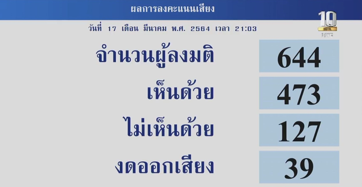 จากนั้นเป็นการลงมติโดยการขานชื่อ ขณะที่ ส.ส.พรรคภูมิใจไทย วอล์กเอาต์ เดินออกจากห้องประชุมไป