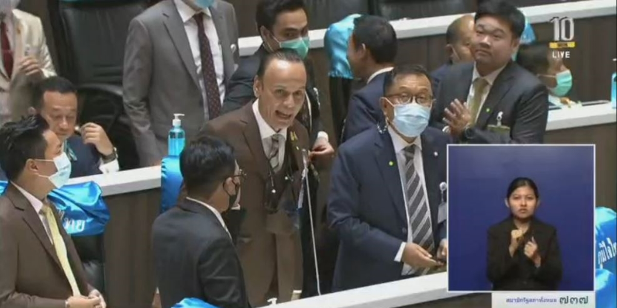 ด้านนายชาดา ไทยเศรษฐ์ ส.ส.อุทัยธานี พรรคภูมิใจไทย ประกาศกลางห้องประชุม ไม่ร่วมสังฆกรรมในการลงมติครั้งนี้ โดยระบุว่า “ผมคงไม่ร่วมสังฆกรรมด้วยกับพวกฉ้อฉล ศรีธนญชัย โกหกปลิ้นปล้อน และไร้สาระสิ้นดี นี่คือสภาโจ๊ก”