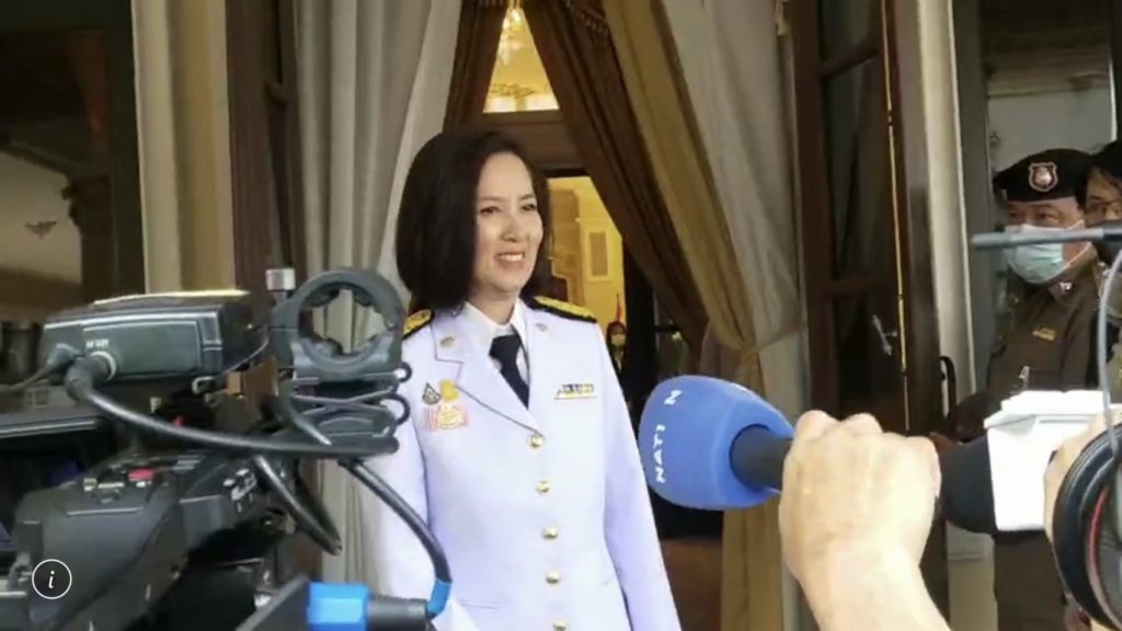 ขณะที่ น.ส.ตรีนุช เทียนทอง รัฐมนตรีว่าการกระทรวงศึกษาธิการ เป็นคนสุดท้ายที่เดินทางมาถึง ได้ยิ้มทักทายกับสื่อมวลชน พร้อมระบุว่าจะเริ่มเข้าทำงานที่กระทรวงศึกษาธิการในวันจันทร์ที่ 29 มี.ค. เวลา 08.00 น.