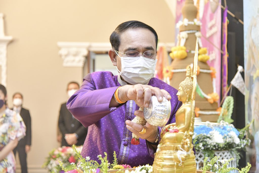 ในโอกาสนี้ นายกรัฐมนตรีได้สรงน้ำพระพุทธมหานาค ปฏิมากร นาคปรก 9 เศียร ที่มีความหมายสิริมงคล หมายถึงการปกป้องดูแลประเทศชาติ พร้อมกล่าวขอพรให้ประเทศไทยมีความเจริญรุ่งเรือง และอวยพรให้ประชาชนคนไทยมีความสุข เป็นคนดีของสังคม ขณะเดียวกันก็อวยพรให้แก่คณะรัฐมนตรีและตัวแทนเด็กเยาวชนที่ได้รดน้ำดำหัว ขอให้ทุกคนช่วยกันแก้ไขปัญหา นายกรัฐมนตรียืนยันว่าจะดูแลทุกคนให้ดีที่สุด