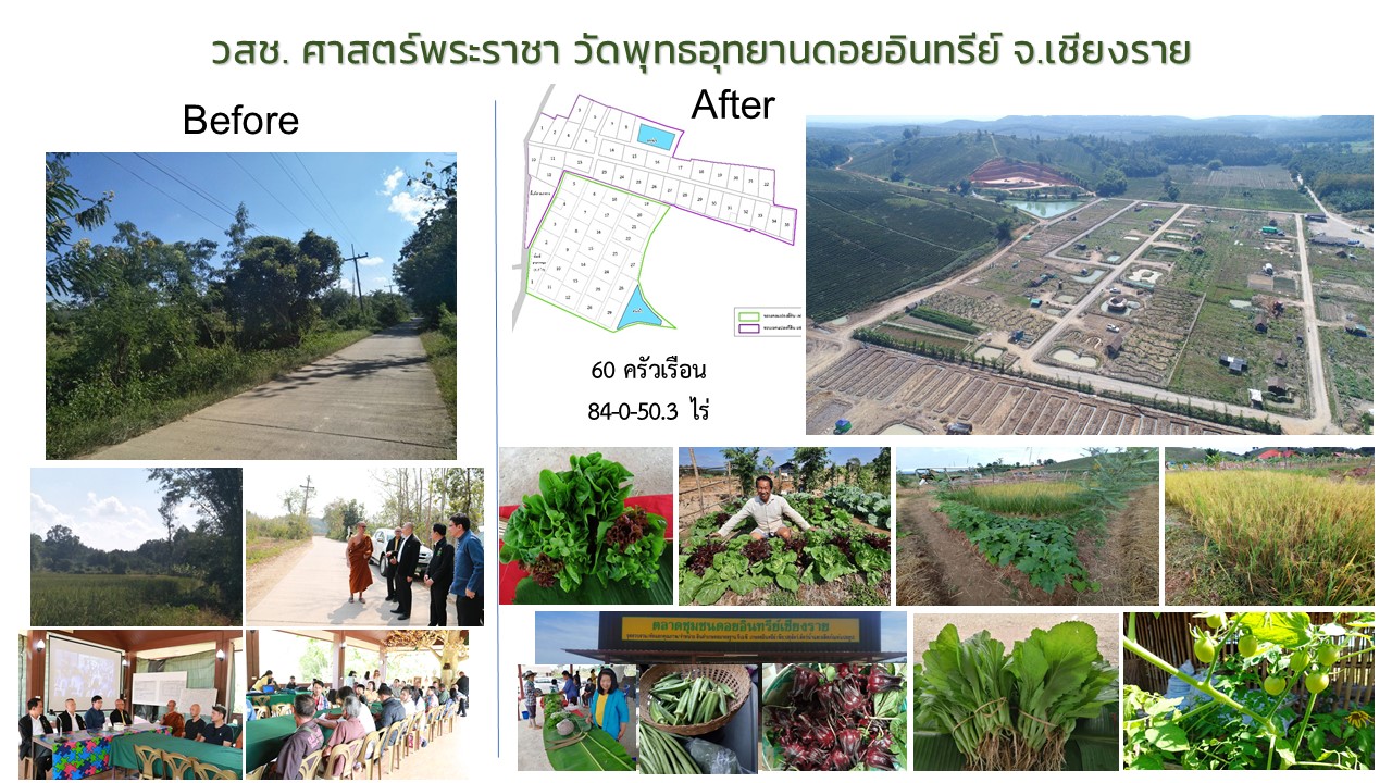 “เดือนพฤษภาคม 2564 บจธ.จะพัฒนาและขยายตลาดสินค้าเกษตรปลอดภัยของชุมชนยกระดับให้เป็นที่รู้จักมากยิ่งขึ้น โดยจะจัดตลาดนัดสินค้าเกษตรปลอดภัยในพื้นที่จังหวัดเชียงรายที่มีผลผลิตทางการเกษตรจากกลุ่มสมาชิกของวิสาหกิจชุมชนศาสตร์พระราชาวัดพุทธอุทยานดอยอินทรีย์ ต.ดอยฮาง อ.เมือง จ.เชียงราย และกลุ่มวิสาหกิจชุมชนเชียงรายอุ่นไอรักษ์ ต.ริมกก อ.เมือง จ.เชียงราย หลังจากที่บจธ.เข้ามาช่วยเหลือเพียง 1 ปี กลุ่มสมาชิกได้พัฒนาที่ดินจากที่เป็นพื้นที่ว่างเปล่า พลิกฟื้นให้เป็นพื้นที่เกษตรปลอดสารพิษใช้ประโยชน์อย่างเต็มพื้นที่ สร้างรายเสริมได้ให้แก่สมาชิกในชุมชนแล้วเฉลี่ย 5,000 – 6,000 บาทต่อเดือน” ผู้อำนวยการ บจธ. กล่าว