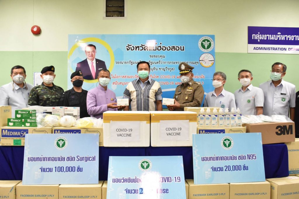 แม่ฮ่องสอน 2 เม.ย.-“อนุทิน”ลงพื้นที่แม่ฮ่องสอน ส่งมอบวัคซีนป้องกันโควิด-19 รวม 2,000 โดส สร้างภูมิคุ้มกันบุคลากรด่านหน้าปฏิบัติหน้าที่ดูแลผู้ลี้ภัยความไม่สงบจากประเทศเพื่อนบ้านอย่างปลอดภัย