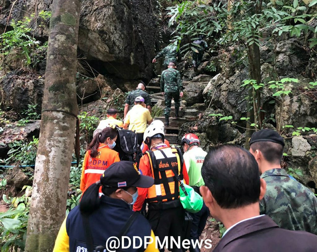 ขณะที่ ปภ.ได้ส่งทีมค้นหาและกู้ภัยในเขตเมือง (USAR) จำนวน 8 นาย เข้าพื้นที่ เพื่อสนับสนุนปฏิบัติการช่วยเหลือพระสงฆ์ออกจากถ้ำแล้ว จากนั้น 11.30 น. ทีมกู้ภัยสามารถนำพระออกจากถ้ำได้อย่างปลอดภัยแล้ว. – สำนักข่าวไทย