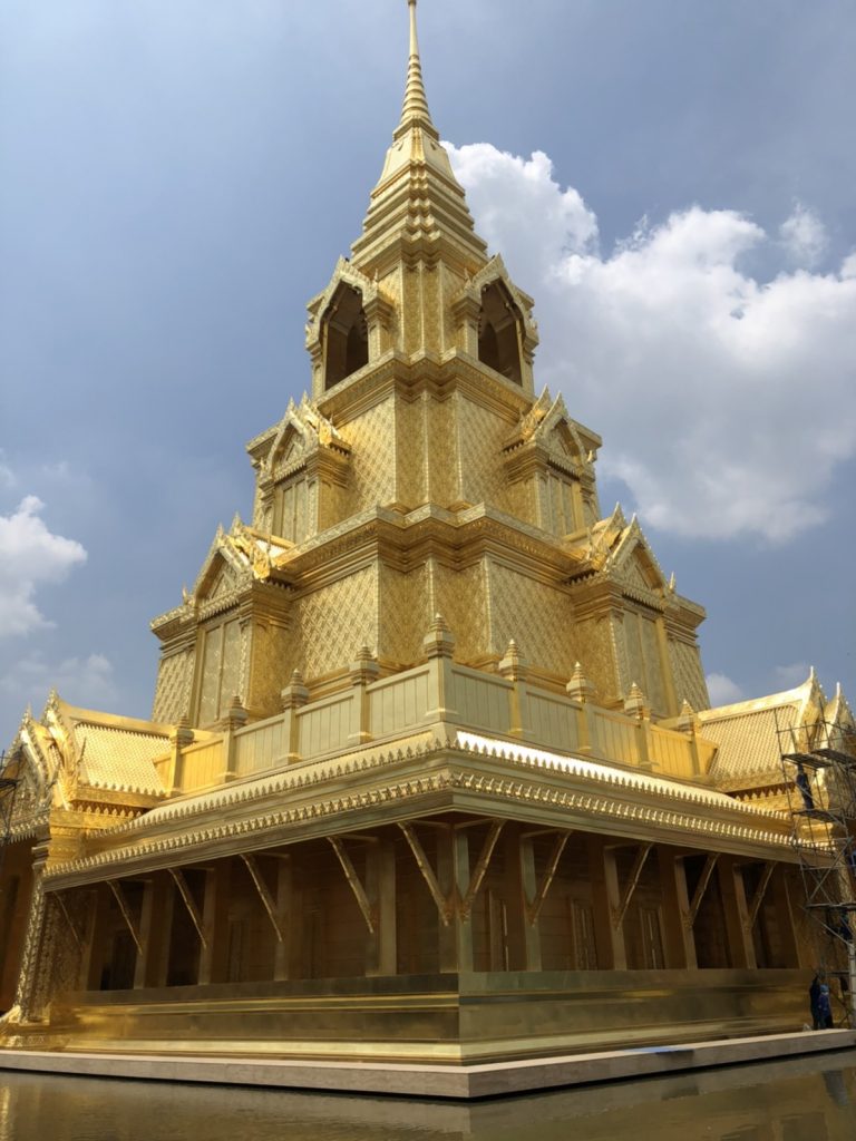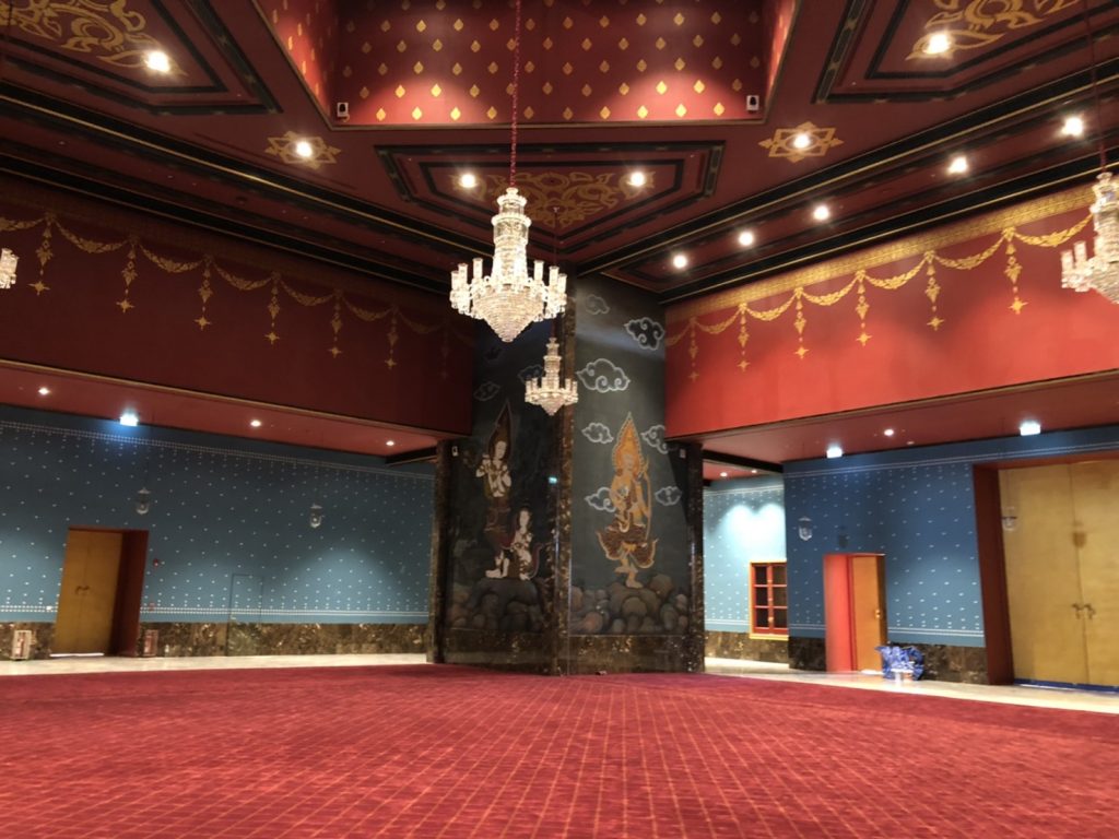เบื้องล่างของ เครื่องยอด เป็น “โถงรัฐพิธี” ที่พระบาทสมเด็จพระเจ้าอยู่หัวจะเสด็จพระราชดำเนิน มาในการรัฐพิธี เปิดสมัยประชุมรัฐสภาขึ้นครั้งแรกหลังการเลือกตั้งทุกสมัย ภายในตกแต่งด้วยงานจิตรกรรมฝาผนัง ของสำนักช่างสิบหมู่กรมศิลปากร ที่มีการวาดภาพเรื่องราวสังคมไทยทั่วทุกภาค พร้อมเพิ่มภาพ ประชาชนสวมหน้ากาก ป้องกันโควิด-19 เพื่อบันทึกเหตุการณ์บ้านเมืองปัจจุบันด้วย