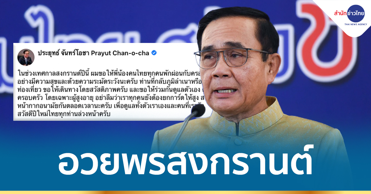 กรุงเทพฯ 12 เม.ย.-นายกรัฐมนตรีโพสต์เฟซบุ๊ก “สวัสดีปีใหม่ไทย” ขอคนไทยพักผ่อนช่วงเทศกาลสงกรานต์อย่างมีความสุข ระมัดระวัง ยกการ์ดสูง