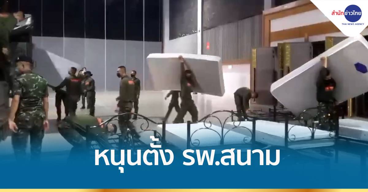 สำหรับภาพรวมขณะนี้ กระทรวงกลาโหมร่วมกับกระทรวงสาธารณสุขกำลังทำงานร่วมกันอย่างใกล้ชิด เร่งจัดตั้งและเตรียมความพร้อมรพ.สนามในพื้นที่ต่างๆ ทั้งการสนับสนุนยานพาหนะ กำลังพล และสิ่งอุปกรณ์กับส่วนราชการในพื้นที่ที่จัดตั้ง รพ.สนาม รวมทั้งได้จัดตั้งรพ.สนาม ในหน่วยทหาร จำนวน 24 แห่ง 5,341 เตียง โดยมี ศปม.(กองทัพไทย) เป็นหน่วยประสานกับส่วนราชการต่างๆ ภายใต้การบริหารจัดการภาพรวมโดย สธ. เพื่อรับมือกับการแพร่ระบาดของ COVID-19 ที่กระจายเป็นวงกว้างและมีผู้ติดเชื้อเพิ่มมากขึ้น