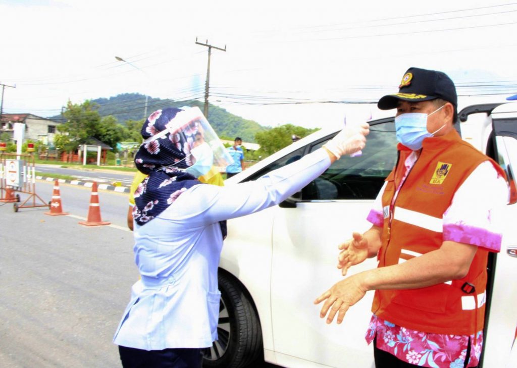 โดยก่อนเดินทางมาเยี่ยมจุดตรวจ หน้าองค์การบริหารส่วนตำบลทุ่งนุ้ย ตำบลทุ่งนุ้ย จังหวัดสตูล โดยมีหัวหน้าสำนักงานป้องกันและบรรเทาสาธารณภัยจังหวัดสตูล เจ้าหน้าที่ตำรวจ เจ้าหน้าที่สาธารณสุข อสม.ในพื้นที่ให้การต้อนรับ อีกด้วย
