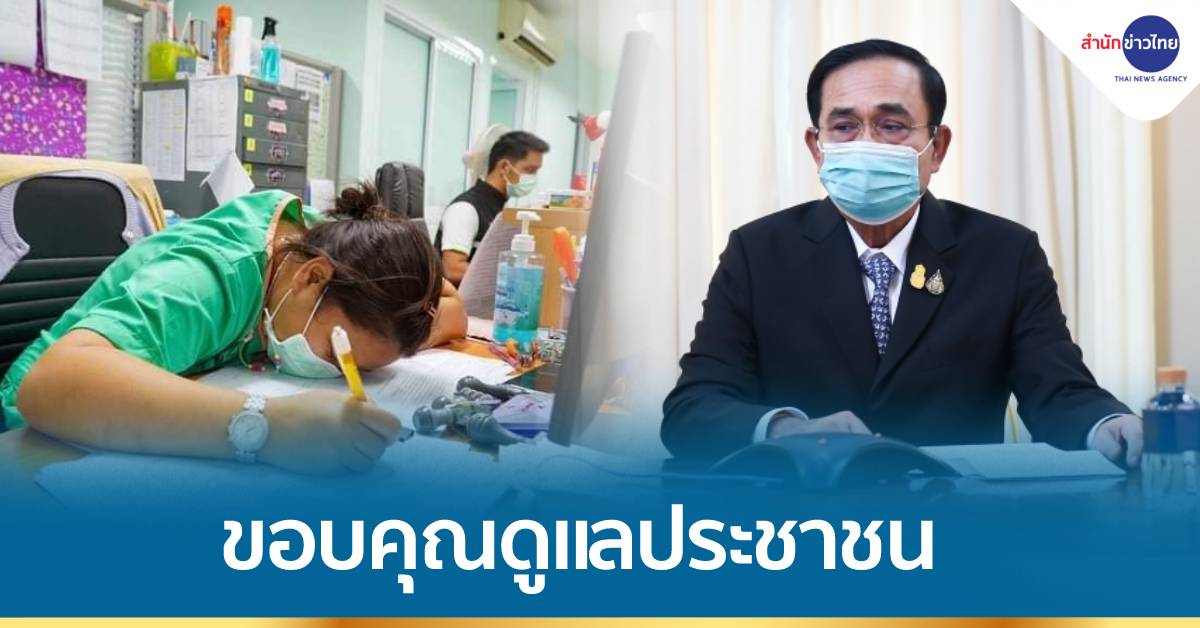 โดยนายกรัฐมนตรี ขอขอบคุณบุคลากรทางการแพทย์ ทั้งแพทย์ พยาบาล วิชาชีพสุขภาพทุกวิชาชีพ อสม. เจ้าหน้าที่ตำรวจ ทหาร และพลเรือนทุกหน่วยงาน ที่ต้องปฎิบัติหน้าที่อย่างทุ่มเทเพื่อความสุขของคนไทยทุกคน.-สำนักข่าวไทย