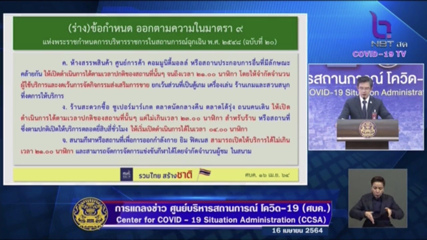 ทำเนียบ 16 เม.ย. – ศบค. ยกระดับพื้นที่ควบคุมโควิด-19 สีแดง-ส้ม สั่งปิดผับ บาร์ คาราโอเกะ ชั่วคราว 14 วัน