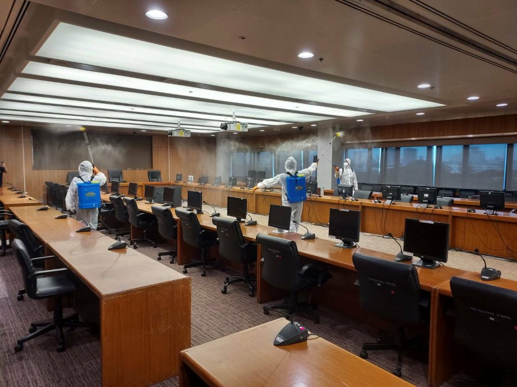 ผู้สื่อข่าวรายงานว่า กลุ่มอาคารสถานที่ สำนักงานเลขาธิการวุฒิสภา ได้ให้เจ้าหน้าที่เข้าฉีดพ่นน้ำยาฆ่าเชื้อภายในรัฐสภา ฝั่งวุฒิสภา ภายในห้องประชุมกรรมาธิการต่าง ๆ ห้องอาหาร และบริเวณโดยรอบ รวมถึงบันไดหนีไฟทุกชั้น ที่เจ้าหน้าที่และลูกจ้างบริษัทผู้รับเหมาก่อสร้างใช้เป็นทางขึ้นลงอาคาร หลังปรากฏพนักงานราชการของสำนักงานเลขาธิการวุฒิสภา ติดเชื้อโควิด-19 จำนวน 1 คน ทั้งนี้ เพื่อความปลอดภัยและสร้างความมั่นใจต่อบุคลากรที่ยังต้องมาปฏิบัติหน้าที่ภายในรัฐสภา ขณะเดียวกัน ได้แจ้งเตือนพนักงานทำความสะอาดภายในรัฐสภาให้สวมใส่หน้ากากอนามัยหรือหน้ากากผ้าตลอดเวลาปฏิบัติหน้าที่ด้วย.-สำนักข่าวไทย