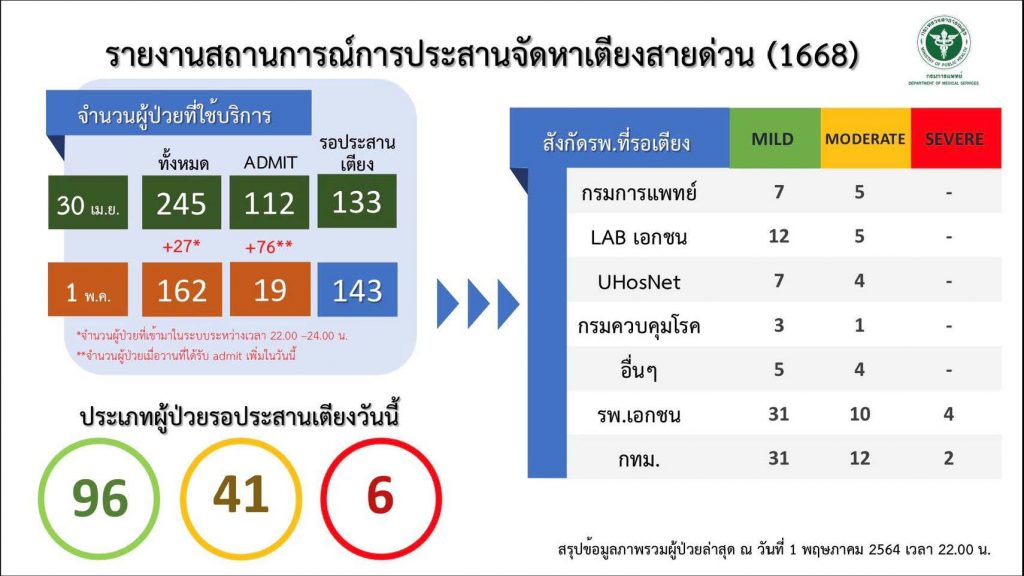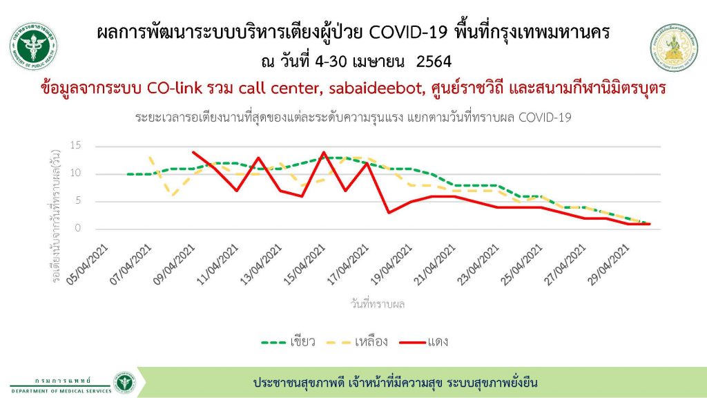 กรมควบบคุมโรค พยายามตรวจเชื้อกลายพันธุ์ตลอด และขอให้ติดตามประกาศของกระทรวงการต่างประเทศ ที่จะชะลอการเดินทางเข้าประเทศของกลุ่มที่ไม่ใช่คนไทยเดินทางกลับบ้านด้วย ส่วนผลการพัฒนาระบบบริหารเตียงผู้ป่วยในพื้นที่ กทม. อัตรารอเตียงลดลง หลังมีความพยายามร่วมมือกันทำงานให้สอดคล้องกันดีขึ้น มีประสิทธิภาพมากขึ้น คือ ภายใน 48 ชั่วโมง ผู้ป่วยจะได้รับการจัดการเรื่องหาเตียงให้เรียบร้อย