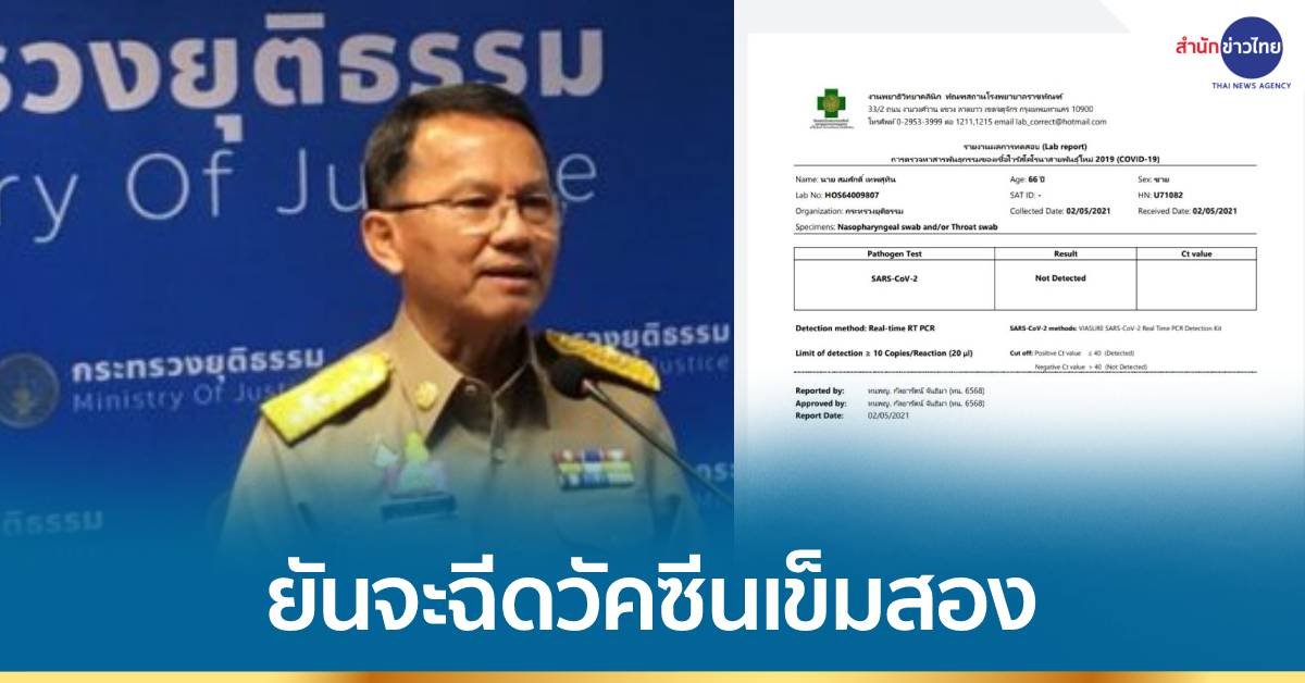 นายสมศักดิ์ กล่าวว่า ยืนยันว่าไม่ได้หายไปไหน อยู่ระหว่างการกักตัว จึงอาจจะไม่ได้เห็นหน้ากัน โดยเมื่อวาน (2 พ.ค.) ได้ไปตรวจโควิด-19 รอบ 2 ที่โรงพยาบาลราชทัณฑ์ ซึ่งผลออกมาเป็นลบ ส่วนกรณีดราม่าว่าวัคซีนที่ตนเองฉีดเมื่อวันที่ 16 มี.ค.64 เป็นน้ำเปล่า เป็นไปไม่ได้ เรื่องนี้ไม่ใช่เรื่องล้อเล่น และตนเองจะไปฉีดวัคซีนเข็มที่ 2 ในวันที่ 25 พ.ค.นี้ อย่างไรก็ตามจะทำเอกสารชี้แจงอย่างละเอียดอีกครั้งในช่วงบ่ายวันนี้.-สำนักข่าวไทย