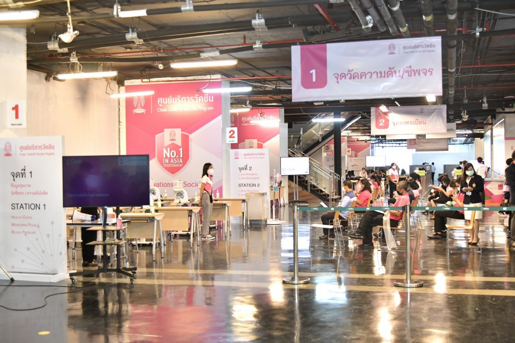 ทั้งนี้กระบวนการรับวัคซีน มีการนำเทคโนโลยีจากนวัตกรรมของคนไทย เช่น เป็ดไทยสู้ภัย QueQ เข้ามาใช้ในการจองคิวล่วงหน้า เพื่อเพิ่มความรวดเร็วในการให้บริการ นอกจากนี้ยังมีการออกแบบระบบที่เชื่อมโยงข้อมูลกับระบบสาธารณสุขของประเทศผ่านกรมควบคุมโรค กระทรวงสาธารณสุข โดยมีระบบการลงทะเบียนเป็นกลุ่ม (Group Registration) เพิ่มศักยภาพในการฉีดวัคซีนได้เป็นจำนวนมาก และเข้าถึงประชาชนได้อย่างรวดเร็ว