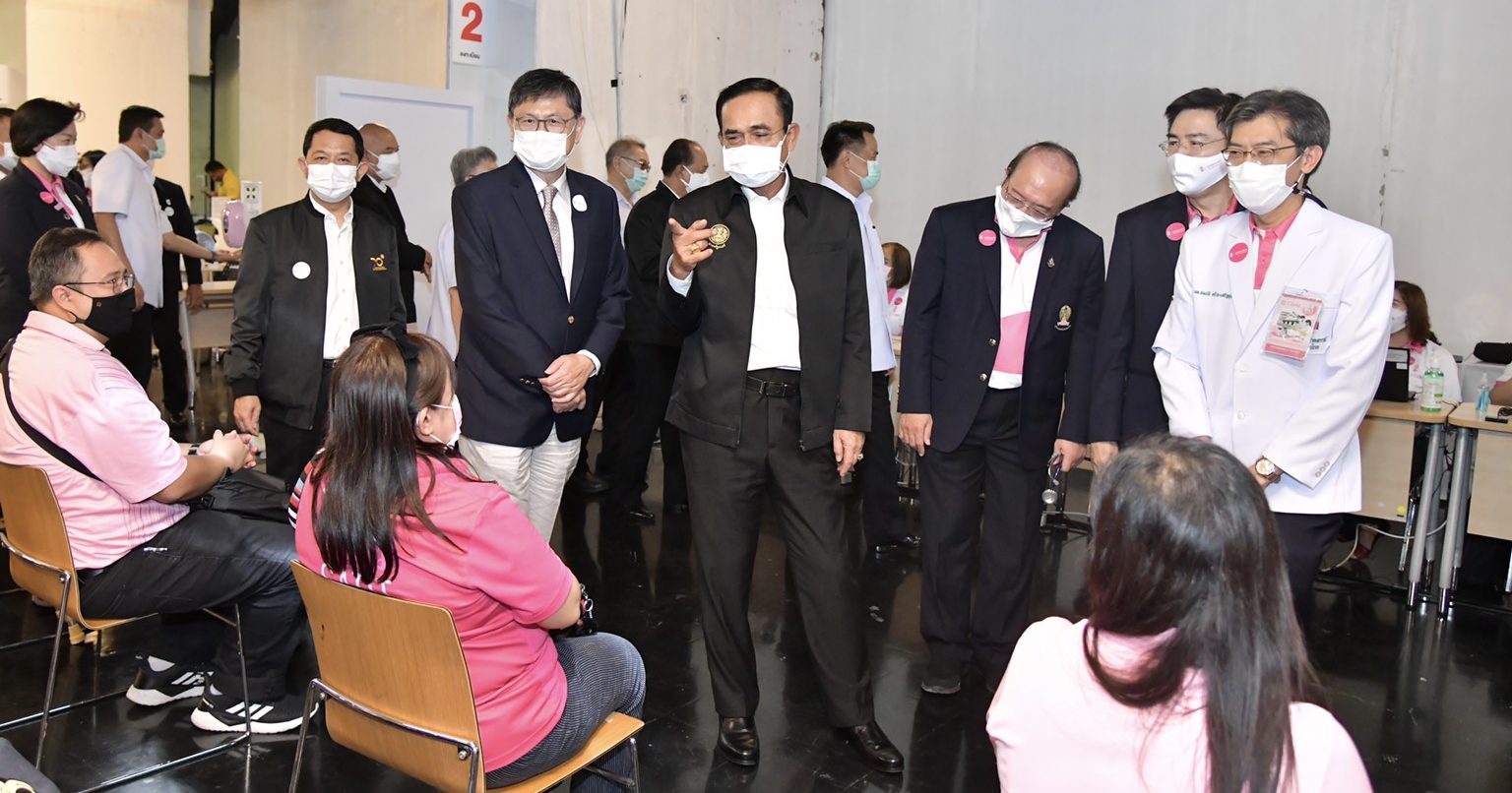 พล.อ.ประยุทธ์ จันทร์โอชา นายกรัฐมนตรี ตรวจเยี่ยมการให้บริการฉีดวัคซีนป้องกันโควิด-19 ของจุฬาลงกรณ์มหาวิทยาลัย โดยมี นายบัณฑิต เอื้ออาภรณ์ อธิการบดีจุฬาฯ และ นพ.นรินทร์ หิรัญสุทธิกุล รองอธิการบดีจุฬาฯ และประธานคณะกรรมการอำนวยการโรงพยาบาลสนาม จุฬาฯ ให้การต้อนรับ