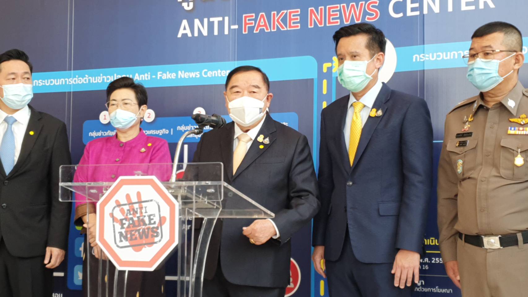 พล.อ.ประวิตร วงษ์สุวรรณ รองนายกรัฐมนตรี เดินทางไปตรวจเยี่ยมและมอบนโยบายการทำงานของศูนย์ต่อต้านข่าวปลอม กระทรวงดิจิทัลเพื่อเศรษฐกิจและสังคม หรือดีอีเอส ถ.แจ้งวัฒนะ โดยกล่าวถึงการดำเนินการของศูนย์ต่อต้านข่าวปลอม ว่ามีความคืบหน้าไปมาก หลังจากที่เคยมาเยี่ยมเมื่อครั้งที่ผ่านมา โดยเฉพาะเรื่องการตรวจสอบข่าวปลอม ได้กำชับให้ตำรวจดำเนินคดีอย่างเคร่งครัดถึงที่สุด เพราะข่าวปลอมทำให้ประชาชนสับสน โดยเฉพาะเรื่องโควิด-19 และวัคซีนที่มีการบิดเบือน ซึ่งต่อไปนี้จะมีการดำเนินคดีทุกกรณีไม่ว่าจะกรณีใด เพื่อไม่ให้เป็นเยี่ยงอย่าง และการบิดเบือนแบบนี้ทำให้เสียหาย ทำให้ประชาชนสับสน