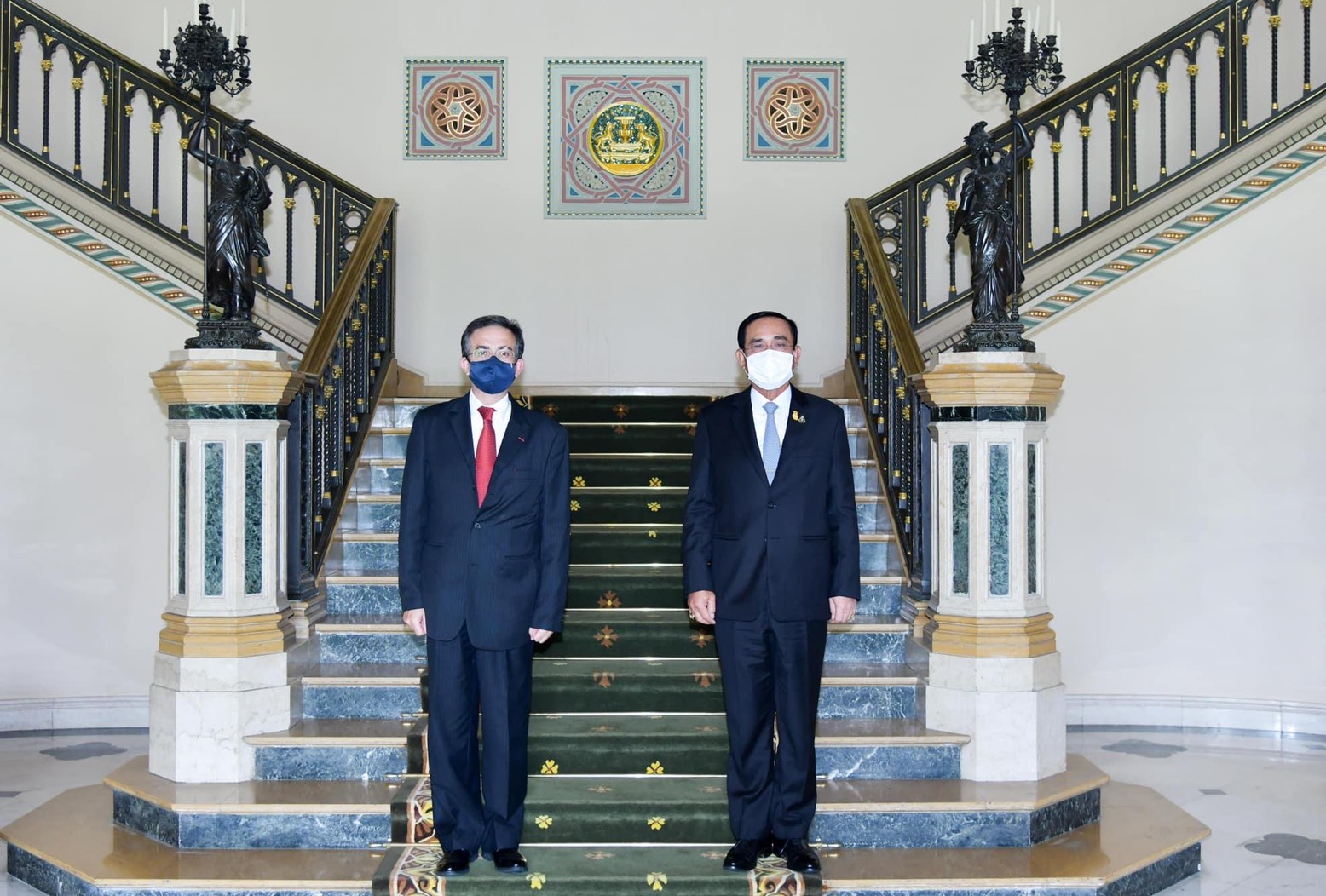 ด้านเอกอัครราชทูตฝรั่งเศสฯ ขอบคุณนายกรัฐมนตรีที่สละเวลาให้เข้าพบหารือ ชื่นชมความสัมพันธ์ระหว่างไทยกับฝรั่งเศสที่มีมาอย่างยาวนาน การแลกเปลี่ยนการเยือนระหว่างกันมาอย่างต่อเนื่อง ทำให้ความสัมพันธ์มีพลวัตมากขึ้น โดยเห็นพ้องการยกระดับความสัมพันธ์สองประเทศสู่การเป็นหุ้นส่วนทางยุทธศาสตร์ ทั้งระดับทวิภาคีและพหุภาคี นอกจากนี้ ทั้งสองฝ่ายได้แลกเปลี่ยนแนวทางการจัดการกับสถานการณ์การแพร่ระบาดของโควิด-19 ร่วมกัน โดยไทยประสงค์ที่จะมีความร่วมมือกับฝรั่งเศสด้านวัคซีน เพื่อให้คนไทยได้รับวัคซีนเร็วขึ้น เป็นส่วนสำคัญในการควบคุมการแพร่ระบาดของโควิด-19