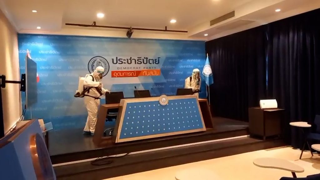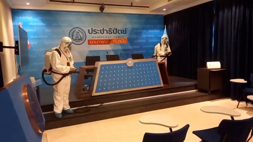 กรุงเทพฯ 22 พ.ค.-พรรคประชาธิปัตย์ ให้เจ้าหน้าที่ระดมฉีดฆ่าเชื้อโควิด “ผอ.พรรค” เผยปิดทำการหนึ่งสัปดาห์