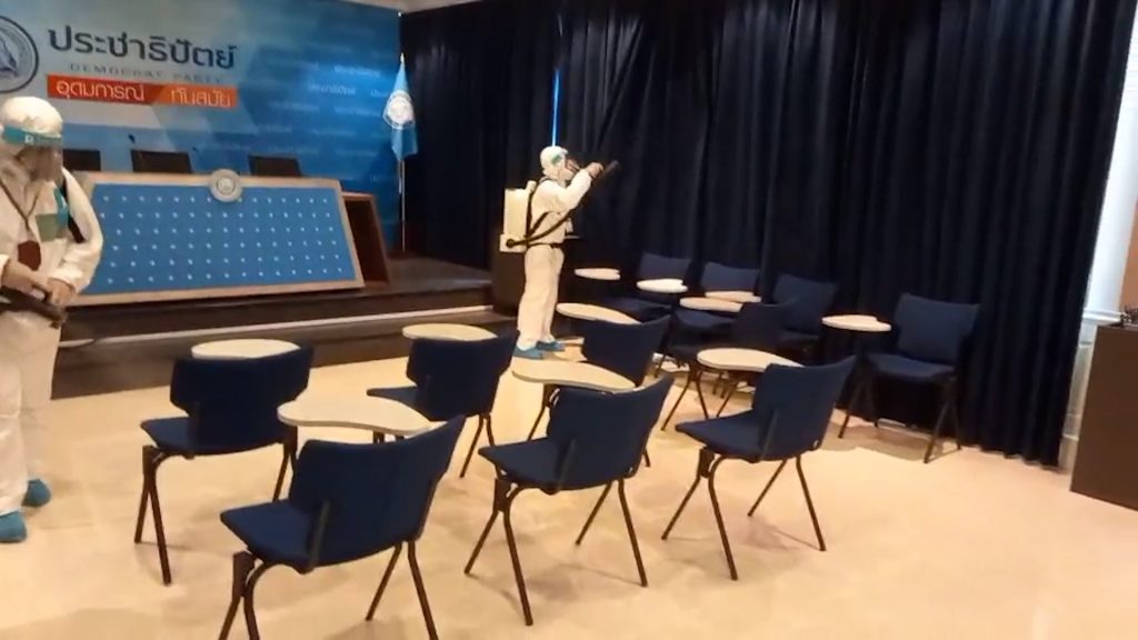 เมื่อวันที่ 22พ.ค.เวลา 09.00 น. ผู้สื่อข่าวรายงานว่าทางพรรคประชาธิปัตย์ ได้ให้เจ้าหน้าที่มาฉีดพ่นยาฆ่าเชื้อโควิด-19 หลังจากมีเจ้าหน้าที่ฝ่ายการเงินของพรรคติดเชื้อโควิด-19 หนึ่งราย โดยเจ้าหน้าที่ได้ทำการฉีดพ่นยาฆ่าเชื้อทั้งอาคาร 100 ปี ม.ร.ว.เสนีย์ปราโมช และอาคารมูลนิธิควงอภัยวงค์ ทุกชั้น ทุกห้อง