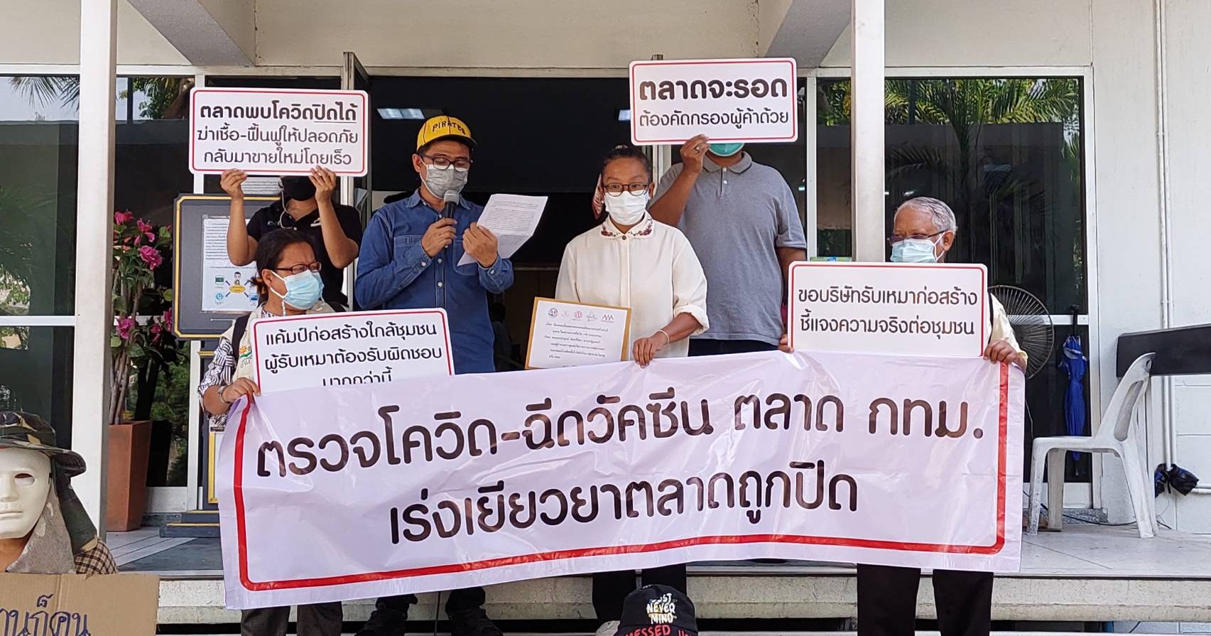 กลุ่มเครือข่ายสร้างเสริมสุขภาพประชาชนพร้อมด้วยแกนนำชุมชน กทม. ใกล้แคมป์คนงานก่อสร้างและมูลนิธิหญิงชายก้าวไกล จำนวน 12 คน นำโดย นายชูวิทย์ จันทรส เลขานุการเครือข่ายสร้างเสริมสุขภาพประชาชน ยื่นหนังสือถึงพล.อ.ประยุทธ์ จันทร์โอชา นายกรัฐมนตรีและรัฐมนตรีว่าการกระทรวงกลาโหม ในฐานะผู้อำนวยการศูนย์บริหารสถานการณ์การแพร่ระบาดของโรคติดเชื้อไวรัสโคโรนา 2019 (โควิด 19) หรือ ศบค. เพื่อขอให้รัฐบาลพิจารณาตรวจเชิงรุกและฉีดวัคซีนให้กลุ่มพ่อค้าแม่ค้าและแคมป์คนงานก่อสร้าง 3 ข้อ ดังนี้ 1. ขอให้ ศบค.เร่งตรวจโควิด-19 ในกลุ่มพ่อค้าแม่ค้าและลูกจ้างในตลาด รวมถึงจัดหาวัคซีนให้กับคนกลุ่มนี้เช่นเดียวกับบุคลากรด่านหน้าที่เป็นกลุ่มเสี่ยง พิจารณามาตรการช่วยเหลือเยียวยาพ่อค้าแม่ค้าตลาดที่ถูกคำสั่งปิดดำเนินการ และควรกำหนดให้มีระยะเวลาจัดการตามมาตรฐานสาธารณสุข ฟื้นฟูตลาดในเวลาที่สั้นที่สุด เพื่อให้ตลาดกลับมาเปิดทำการได้โดยเร็ว โดยระมัดระวังไม่ให้เกิดการเคลื่อนย้ายผู้ใช้แรงงานในตลาดที่ถูกสั่งปิด