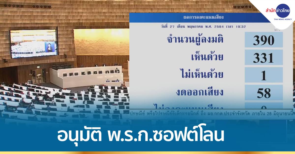 กทม. 27 พ.ค.-สภาฯ อนุมัติ พ.ร.ก.ซอฟต์โลน ผู้ว่าฯ ธปท. ยันไม่ใช่การกู้เงินของรัฐบาลและไม่ได้เป็นหนี้สาธารณะ แต่ให้อำนาจ ธปท.จัดการสภาพคล่องในระบบการเงิน