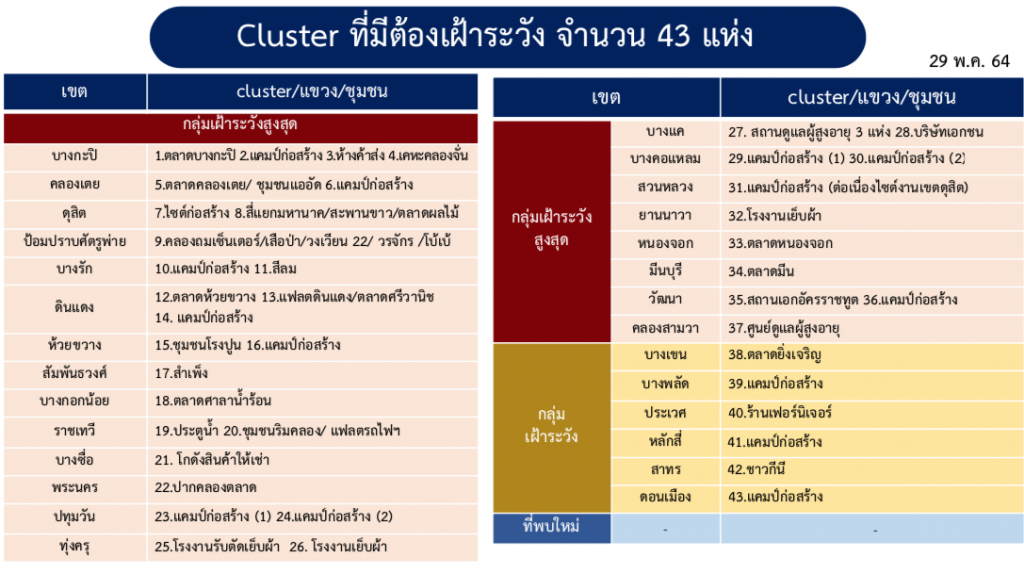 สำหรับกรณีแคมป์ก่อสร้างใน 50 เขตของกรุงเทพมหานคร จากการสำรวจมีทั้งสิ้น 409 แคมป์ บางเขตมีมากกว่า 20 แคมป์ บางแคมป์คนงานเกิน 1,000 คน อาทิ เขตบางกะปิ, เขตบางเขน, เขตลาดพร้าว, เขตห้วยขวาง เป็นต้น พร้อมเน้นย้ำเรื่องการเคลื่อนย้ายแรงงาน และยังมีแผนลงตรวจอีก 30 แคมป์ก่อสร้าง ตั้งแต่วันที่ 1-10 มิ.ย. 2564 เป็นการคัดกรองเชิงรุกด้วยการเก็บตัวอย่างน้ำลายจากแรงงาน รวมถึงมาตรการสิ่งแวดล้อม ความสะอาด จุดสัมผัสร่วม และมาตรการสาธารณสุขอื่นๆ