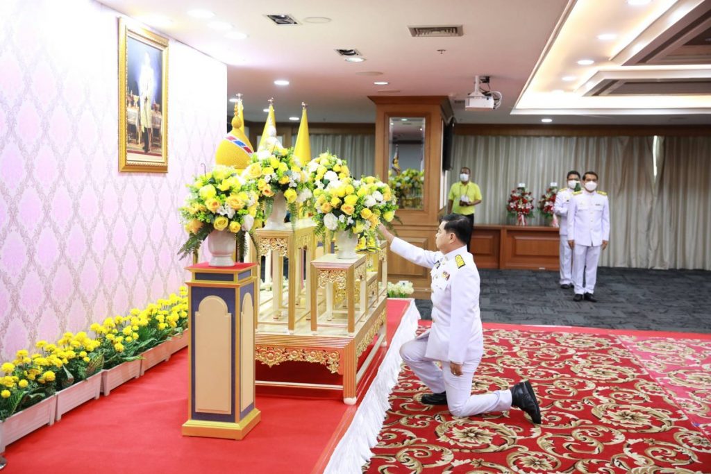 จากนั้นนายสมศักดิ์ ประธานผู้ตรวจการแผ่นดิน เปิดกรวยดอกไม้ถวายราชสักการะ และถวายบังคมต่อหน้าพระบรมฉายาลักษณ์พระบาทสมเด็จพระเจ้าอยู่หัว พร้อมรองศาสตราจารย์อิสสรีย์ หรรษาจรูญโรจน์ ผู้ตรวจการแผ่นดิน