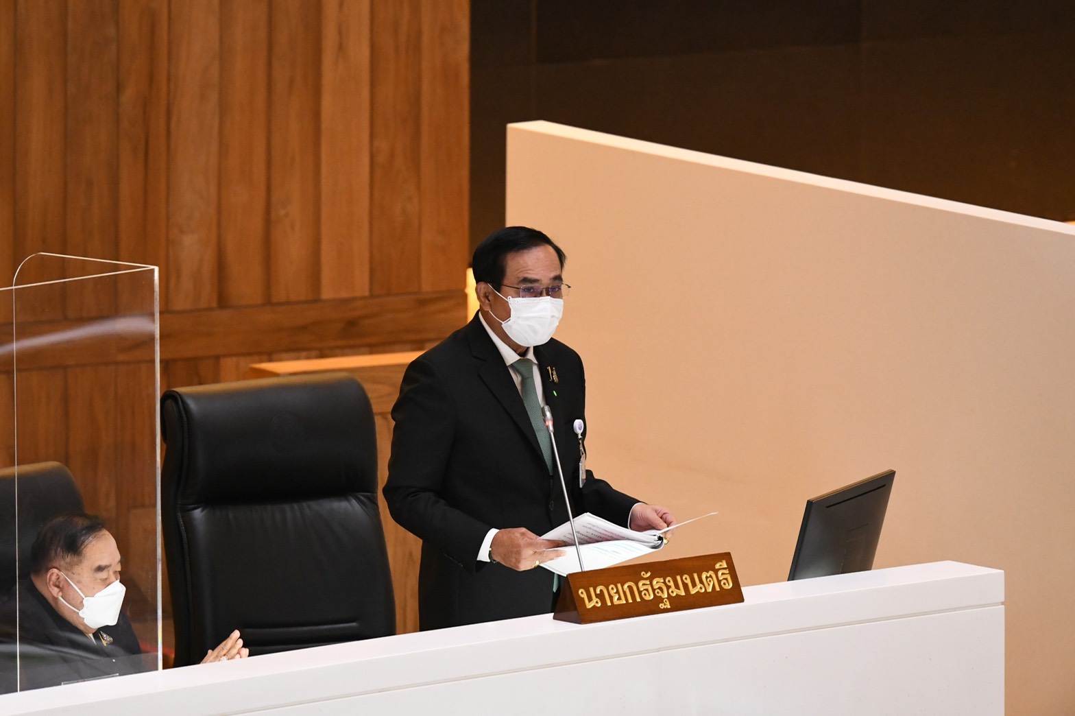 พล.อ.ประยุทธ์ จันทร์โอชา นายกรัฐมนตรีและรัฐมนตรีว่าการกระทรวงกลาโหม ลุกขึ้นชี้แจงว่า การบริหารจัดการวัคซีนเตรียมการมาตลอดและมั่นใจในเดือนมิถุนายนจะมีทั้งวัคซีนที่รัฐบาลจัดหาและวัคซีนทางเลือกฉีดให้ประชาชนเพียงพอตามแผน ขณะที่งบประมาณที่จัดสรรสำหรับกระทรวงกลาโหมน้อยกว่ากระทรวงสาธารณสุข เพราะนอกจากงบประมาณที่จัดสรรให้กระทรวงแล้ว ยังจัดสรรให้กองทุนที่เกี่ยวข้องอีก 3 กองทุนรวมกว่า 1.47 แสนล้านบาท ขณะที่งบของกระทรวงจัดสรรไว้ 1.5 แสนล้านบาท รวมเป็นงบประมาณทั้งสิ้น 2.95 แสนล้านบาท ลดลงจากปีก่อนเพียง 5 พันกว่าล้านบาทเท่านั้น