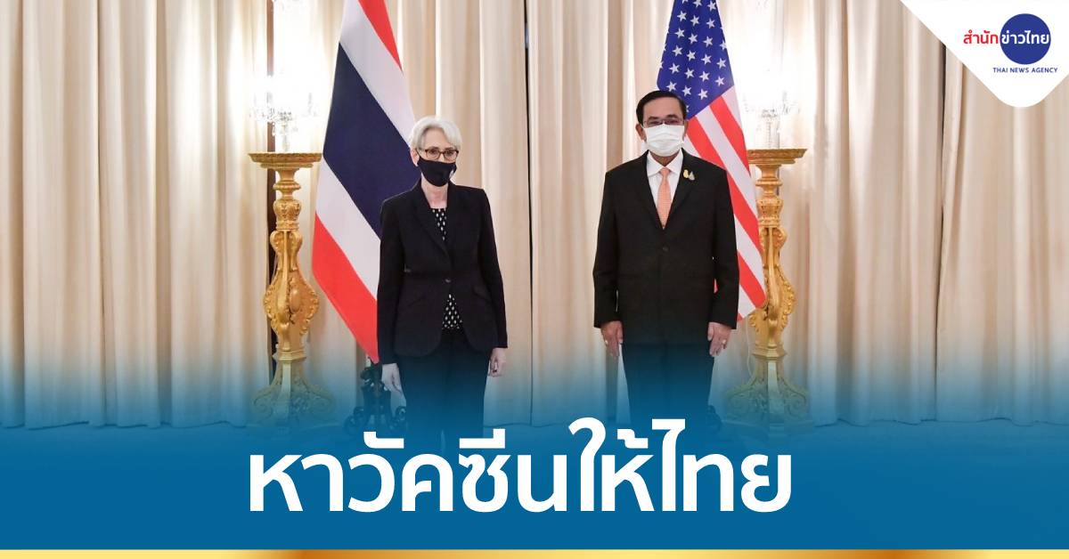 ด้านรัฐมนตรีช่วยว่าการกระทรวงการต่างประเทศสหรัฐอเมริกา ขอบคุณนายกรัฐมนตรีที่ให้การต้อนรับ พร้อมเห็นว่า ขณะนี้หลายประเทศทั่วโลกกำลังเผชิญกับสถานการณ์ที่ยากลำบากจากโควิด-19 ซึ่งสหรัฐฯเข้าใจและมีนโยบายด้านการจัดหาวัคซีนเพื่อช่วยเหลือหลายๆ ประเทศให้ผ่านพ้นจากสถานการณ์ดังกล่าวและพร้อมให้การสนับสนุนไทยในการเข้าถึงวัคซีน ซึ่งนายกรัฐมนตรีขอบคุณและยินดีรับการสนับสนุนโดยจะดำเนินการตามกระบวนการนำเข้าวัคซีนต่อไป