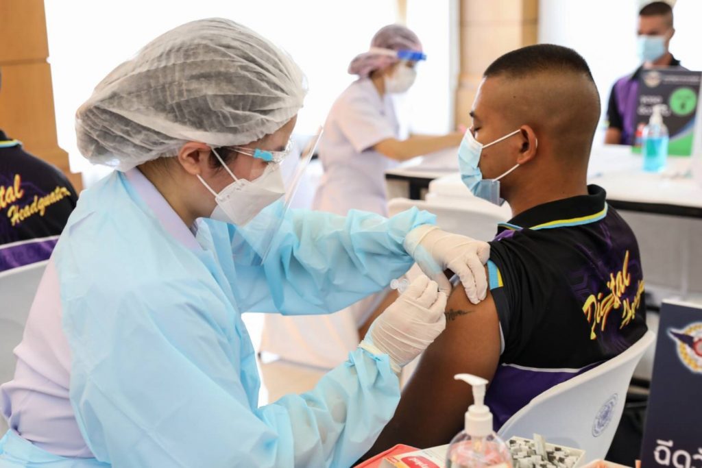 ในส่วนกองบัญชาการกองทัพไทย ได้จัดให้มีการฉีดวัคซีนให้กับกำลังพลกลุ่มเสี่ยงที่ปฏิบัติงานด่านหน้า ในการป้องกันการแพร่ระบาดของเชื้อไวรัสโคโรนา 2019 รวมทั้งเตรียมความพร้อมให้การสนับสนุนรัฐบาลในการฉีดวัคซีนให้กับกำลังพล ครอบครัว และประชาชนทั่วไป เพื่อสนับสนุนการกระจายวัคซีนและสร้างภูมิคุ้มกันหมู่ให้เกิดขึ้นอย่างรวดเร็วทั่วประเทศ ตามนโยบายของรัฐบาล .- สำนักข่าวไทย