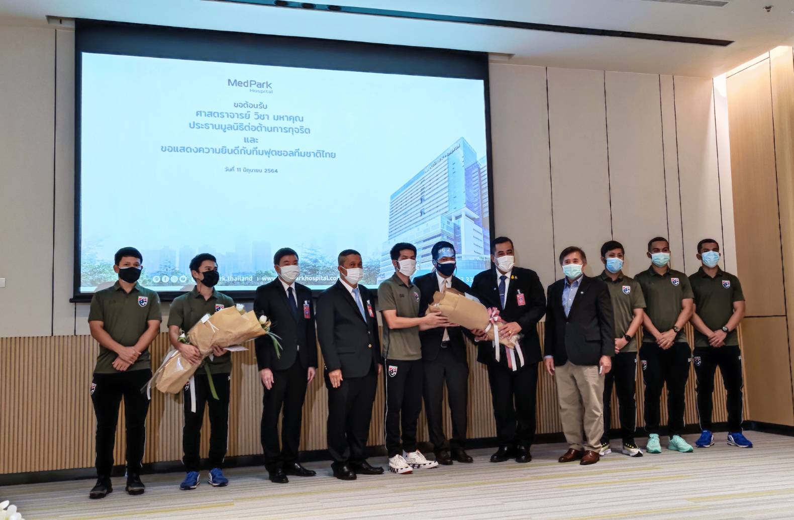 จากความสำเร็จของทีมฟุตซอลทีมชาติไทยที่คว้าตั๋วไปเล่นฟุตซอลชิงแชมป์โลก 2021 ที่ลิทัวเนีย ล่าสุดได้มีการจัดงานแสดงความยินดีและมอบเงินสนับสนุนให้กับทีมฟุตซอลทีมชาติไทย ที่ห้อง Forum 1,2 โรงพยาบาล Med Park เมื่อวันศุกร์ที่ 11 มิ.ย.64 โดยงานนี้ได้รับเกียรติจากหลายภาคส่วน อาทิ ศ.วิชา มหาคุณ ประธานมูลนิธิต่อต้านการทุจริต เป็นประธานในงาน พร้อมด้วย นายภิญโญ แสงภู่ อธิบดีผู้พิพากษาศาลอาญามีนบุรี พลเอกสุชาติ ผ่องพุฒิ คณะทำงานในฐานะตัวแทนพลเอก ประวิตร วงษ์สุวรรณ รองนายกรัฐมนตรี, คุณสมถวิล ปรานวนิช ที่ปรึกษาคณะจัดการโรงพยาบาล Med Park, คุณลลิสา จงบารมี อดีตทูตวัฒนธรรมฯ, ดร.ปัญจรัตน์ มังกรกนก, ดร.ศุลีมาศ สุทธิสัมพัทน์, คุณสุมณี คุณะเกษม, คุณสุทิน บัวตูม ผู้จัดการทีมฟุตซอลทีมชาติไทย