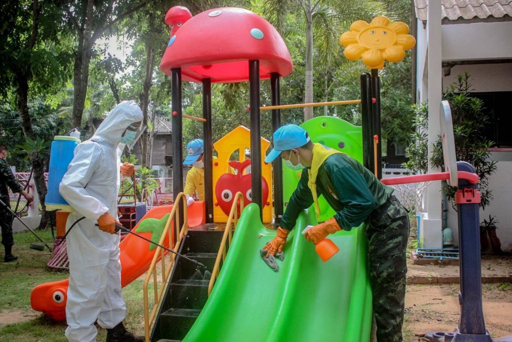 ทั้งนี้ได้เริ่มดำเนินการมาตั้งแต่ มกราคมจนถึงปัจจุบัน ใน 428 พื้นที่ และ 240 โรงเรียนทั่วประเทศ เช่น กทม., นนทบุรี, นครนายก, ลพบุรี, ราชบุรี, ปราจีนบุรี, นครราชสีมา, ร้อยเอ็ด, พิษณุโลก, ตาก, น่าน, เพชรบูรณ์, เชียงใหม่ เป็นต้น และจะคงให้การสนับสนุนการล้างสิ่งปนเปื้อนและฆ่าเชื้อโรคตามแหล่งชุมชน สถานศึกษาทั่วประเทศต่อไป หากมีการร้องขอ โดยจะมีการกำหนดแผนงานร่วมกับทางโรงเรียน เพื่อคงมาตรการป้องกันไว้อย่างต่อเนื่องจนกว่าสถานการณ์การแพร่ระบาดจะคลี่คลาย .- สำนักข่าวไทย