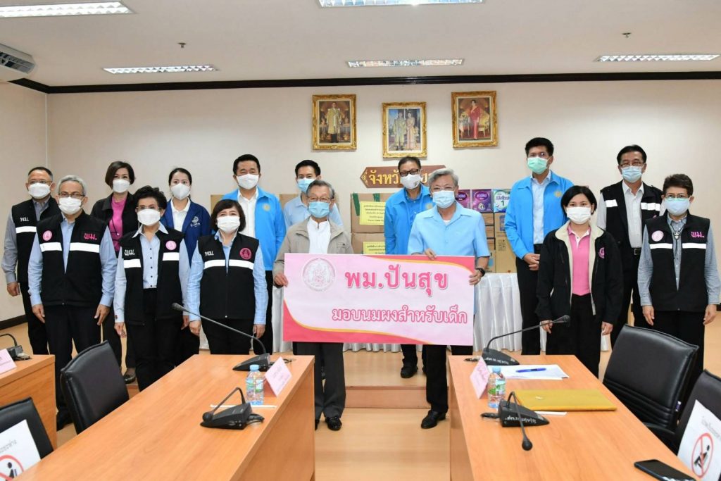 โดยหน้ากากอนามัยที่นำมามอบในครั้งนี้ ได้รับการสนับสนุนจากสำหรับหน้ากากอนามัยที่นำมามอบได้รับการสนับสนุนจากสมาคมฮกเกี้ยนแห่งประเทศไทย มูลนิธิเพื่อสัมพันธภาพไทย – จีน หนังสือพิมพ์ซิงเสียนเยอะเป้า บริษัท ออโรร่า ซักเซส จำกัด บริษัท CBS Shoes บริษัท ไทยซิง สตีล จำกัด และบริษัท หยงชิง สตีล (ไทยแลนด์) จำกัด ที่มอบผ่านทางมูลนิธิเพื่อสังคมและการศึกษา และหน้ากากอนามัยสำหรับเด็ก ได้รับการสนับสนุนจาก นายเทวัญ ลิปตพัลลภ นายสุภดิช อากาศฤกษ์ สมาชิกสภาผู้แทนราษฎร ดร.ชัยรัตน์ จำนงค์การ พร้อมด้วยคณะนักศึกษาประกาศนียบัตรชั้นสูงการเมืองการปกครองในระบอบประชาธิปไตยสำหรับนักบริหารระดับสูง (ปปร.) รุ่นที่ 24 สมาคมฮกเกี้ยนแห่งประเทศไทย บริษัท บาโอจิ จำกัด บริษัทเซียน หัว ไท้ จำกัด นายใช่ เซี่ยว ซิง สมาคมการค้าฟูเจี้ยนอาน บริษัท จิ่ว หลง ไทย นายโหลว เจี้ยน หยฟู่ จำนวน นายจักร สื่อมโนธรรม บริษัท จุไทย กรุ๊ป จำกัด บริษัท จริงใจเสมอ ผ่าน “โครงการ MiniMask หน้ากากเพื่อเด็ก”