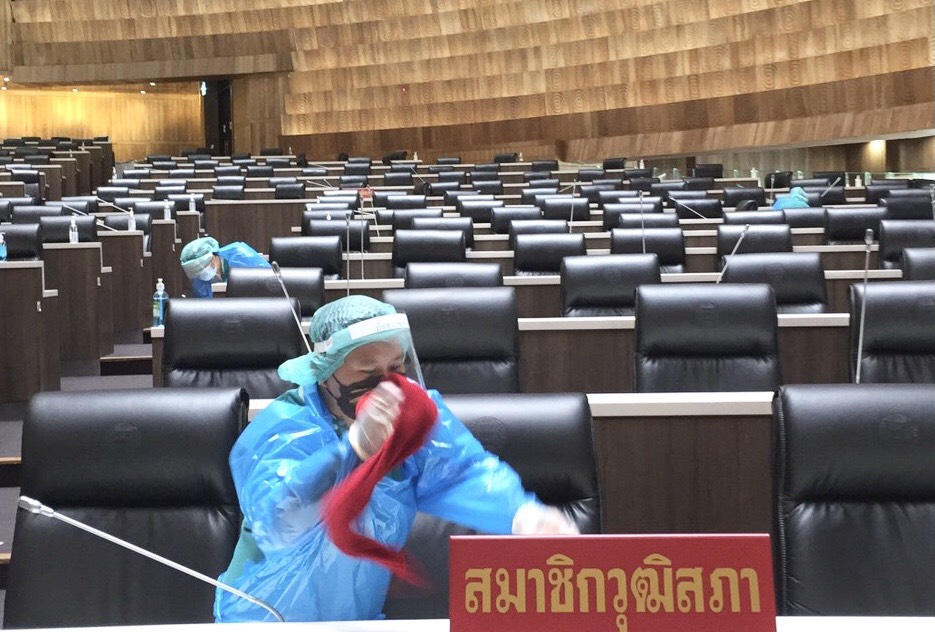 รัฐสภา 26 มิ.ย.- บิ๊กคลีนนิ่ง ห้องประชุมสภาฯ ห้องอาหารสมาชิกฯ และลิฟต์โดยสาร หลัง ส.ว.ติดเชื้อโควิด