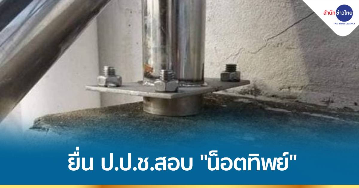 นายศรีสุวรรณ จรรยา เลขาธิการสมาคมองค์การพิทักษ์รัฐธรรมนูญไทย ยื่นคำร้องต่อคณะกรรมการป้องกันและปราบปรามการทุจริตแห่งชาติ(ป.ป.ช.) เพื่อขอให้สอบเอาผิดกรมทางหลวง กรณีปล่อยให้ผู้รับเหมาทำน็อตทิพย์เพื่อหลอกตา โดยไม่มีการเชื่อมต่อกับพื้นปูนซีเมนต์จริง บริเวณเสาราวจับบันได และเสาโครงหลังคากันแดดฝน ในโครงการปรับปรุงสะพานลอย บนถนนกาญจนาภิเษกหรือถนนวงแหวนตะวันตก มูลค่าเกือบ 10 ล้านบาท ว่ากรณีดังกล่าวแม้ผู้บริหารของแขวงทางหลวงนนทบุรี และวิศวกรโยธาปฏิบัติการ กรมทางหลวง ได้รีบออกมาแก้ข่าวและอ้างกับสื่อมวลชน ว่าเป็นการก่อสร้างเพิ่มเติมช่วงโครงหลังคากันฝน ครอบทับสะพานลอยเก่ามีอยู่แล้ว ผู้รับเหมาจึงเพิ่มเติมเสาขึ้นมาเพื่อยึดติดกับโครงสร้างสะพานลอยของเดิม ซึ่งโครงสร้างสะพานลอยของเดิมมีเสาพร้อมน็อตติดกับพื้นอยู่ก่อนแล้ว ผู้รับเหมาจึงนำแผ่นเหล็กของฐานเสาใหม่มาเชื่อมกับฐานเหล็กเก่าเพื่อต้องการให้แข็งแรงมากขึ้น และแผ่นสแตนเลสที่ทำลอยไว้เป็นการทำโชว์เพื่อความสวยงามของผู้รับเหมา ไม่ได้เกี่ยวข้องหรือมีผลกระทบกับโครงสร้างหลักแต่อย่างใด