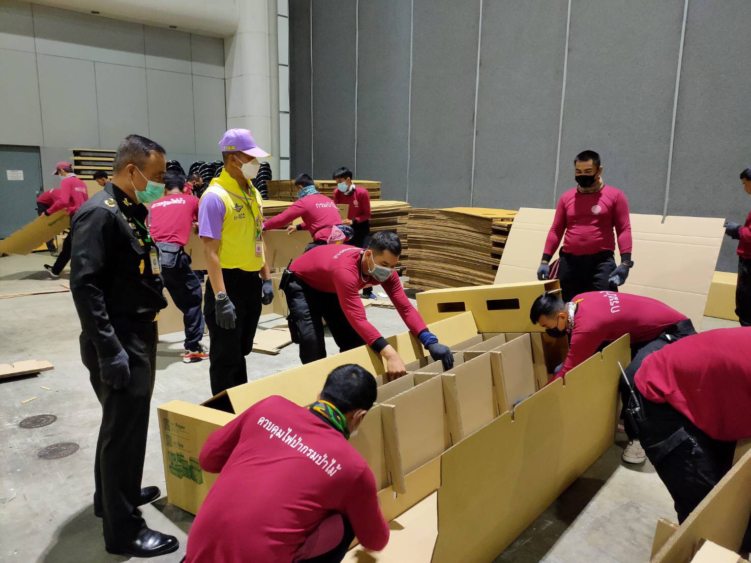 กรุงเทพฯ 2 ก.ค.-ผบ.นทพ.ประสานหลายหน่วยเร่งประกอบเตียงกระดาษ รองรับผู้ป่วยที่อาคาร Challenger 2 รพ.สนามบุษราคัม 1,500 เตียง ให้ผู้ป่วยเข้าระบบรักษาอย่างรวดเร็ว ย้ำหนุนศบค.แก้ปัญหาจนสถานการณ์ปกติ