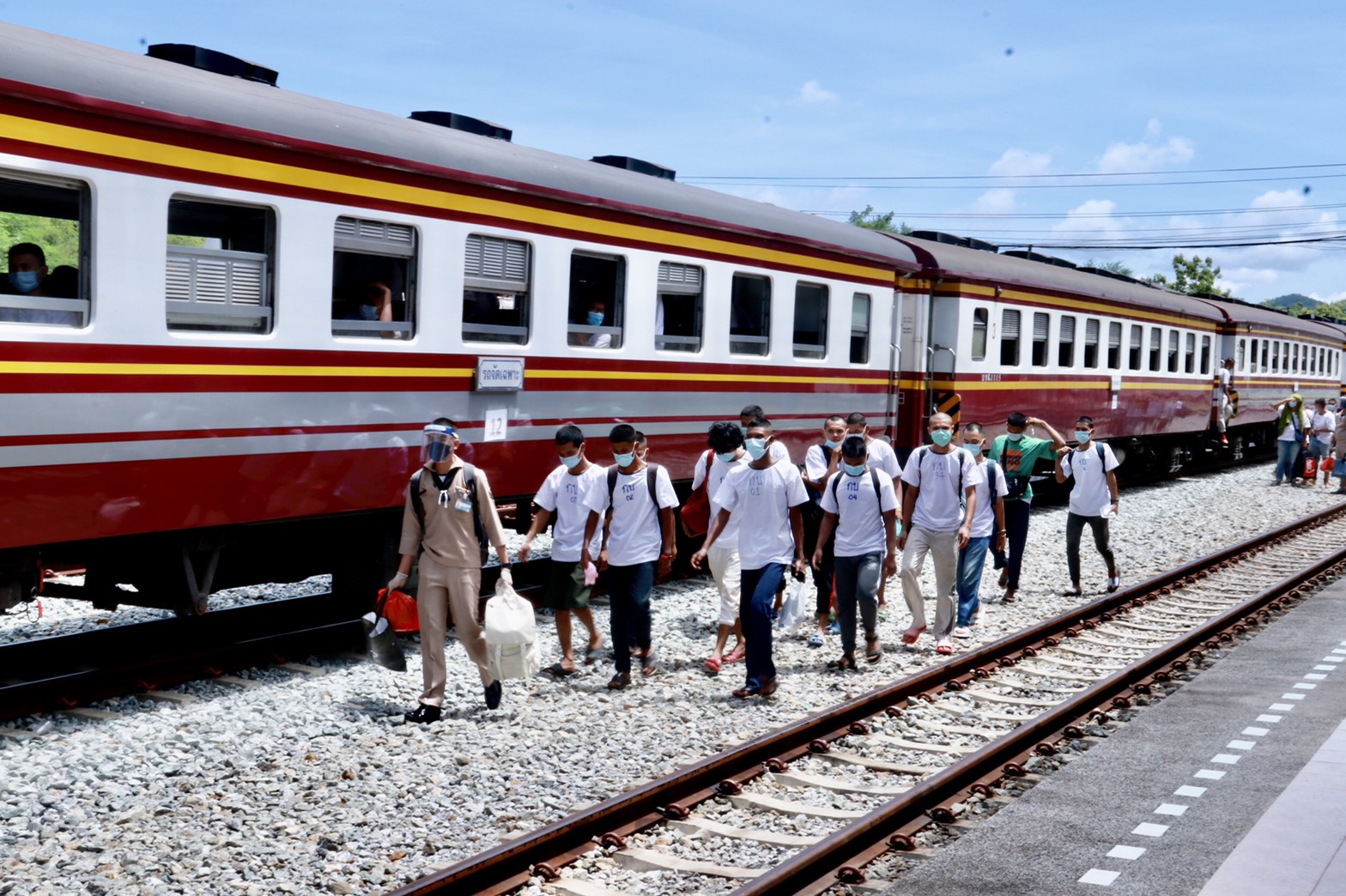 สัตหีบ 2 ก.ค. -กองทัพเรือ รับทหารใหม่ จากภาคใต้ 1,100 นาย เดินทางโดยรถไฟถึงสัตหีบ ด้วยมาตรการคุมเข้ม ตรวจหาเชื้อโควิด -19