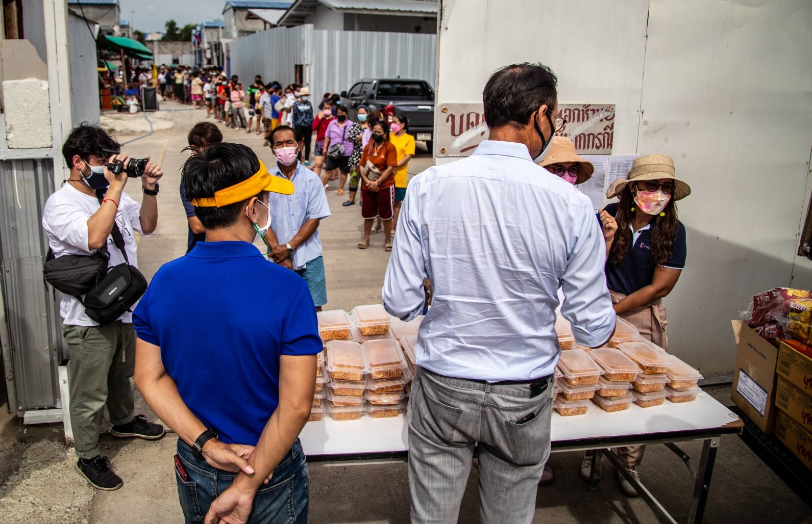 นายกรณ์ จาติกวณิช หัวหน้าพรรคกล้าและอดีตรัฐมนตรีว่าการกระทรวงการคลัง พร้อมด้วยนายมนต์ชีพ ศิวะสินางกูร กรรมการบริหารพรรค , นายวิรุจน์ เอกสิทธิผล ผู้เสนอตัวสมัครรับเลือกตั้ง ส.ก.วังทองหลาง ลงพื้นที่ส่งมอบข้าวกล่อง อาหารแห้ง ของใช้จำเป็น หน้าแคมป์คนงาน ซอยสถานทูตลาว เขตวังทองหลาง ที่มีแรงงานกว่า 400 ชีวิต อยู่ระหว่างกักตัวไม่สามารถออกนอกพื้นที่ตามมาตรการของรัฐ