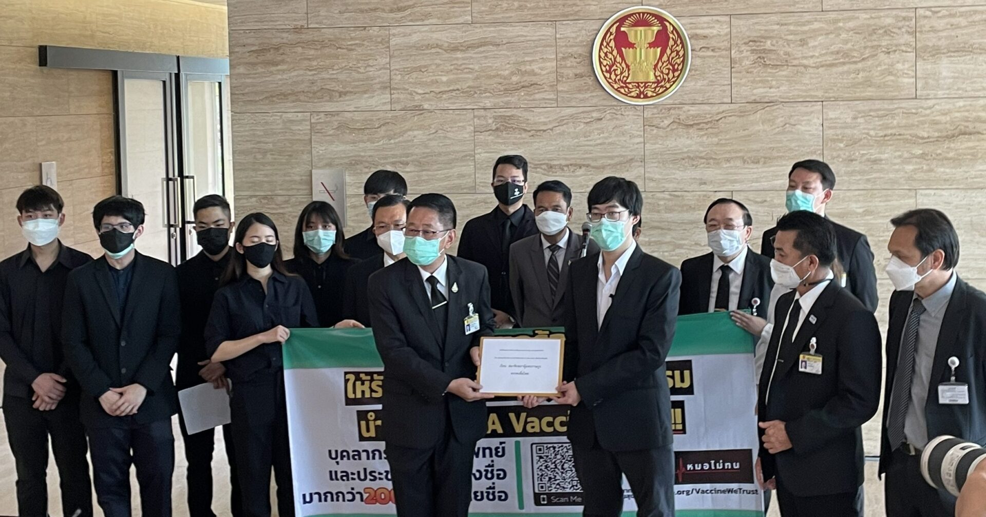 นพ.สันติ กิจวัฒนาไพบูลย์ ตัวแทนภาคีบุคลากรสาธารณสุขและกลุ่มหมอไม่ทน นำรายชื่อประชาชน 215,409 รายชื่อยื่นหนังสือและข้อเรียกร้องต่อนายสมบูรณ์ อุทัยเวียนกุล เลขานุการประธานสภาผู้แทนราษฎร และตัวแทนพรรคประชาธิปัตย์ พรรคก้าวไกล พรรคเสรีรวมไทย พรรคเพื่อไทย โดยเรียกร้อง 2 ข้อ คือเร่งรัดการนำเข้าวัคซีนโควิด-19 ชนิด mRNA เช่น วัคซีนของบริษัทไฟเซอร์และโมเดอร์นา โดยลดขั้นตอนการดำเนินการให้กระชับที่สุด รวดเร็วและใช้เป็นวัคซีนหลักเพื่อนำมาฉีดให้กับประชาชน ทุกคนโดยไม่เสียค่าใช้จ่าย เนื่องจากมีหลักฐานทางวิทยาศาสตร์ทางการแพทย์ยืนยันว่า วัคซีนชนิด mRNA เป็นวัคซีนที่มีประสิทธิภาพ สามารถป้องกันการติดเชื้อครอบคลุมได้หลายสายพันธุ์ ลดอัตราการป่วยหนักและเสียชีวิต และ 2.ขอให้เผยแพร่ข้อมูลกระบวนการจัดหาและการกระจายวัคซีนให้เป็นปัจจุบัน โปร่งใส สม่ำเสมอ ตรวจสอบได้