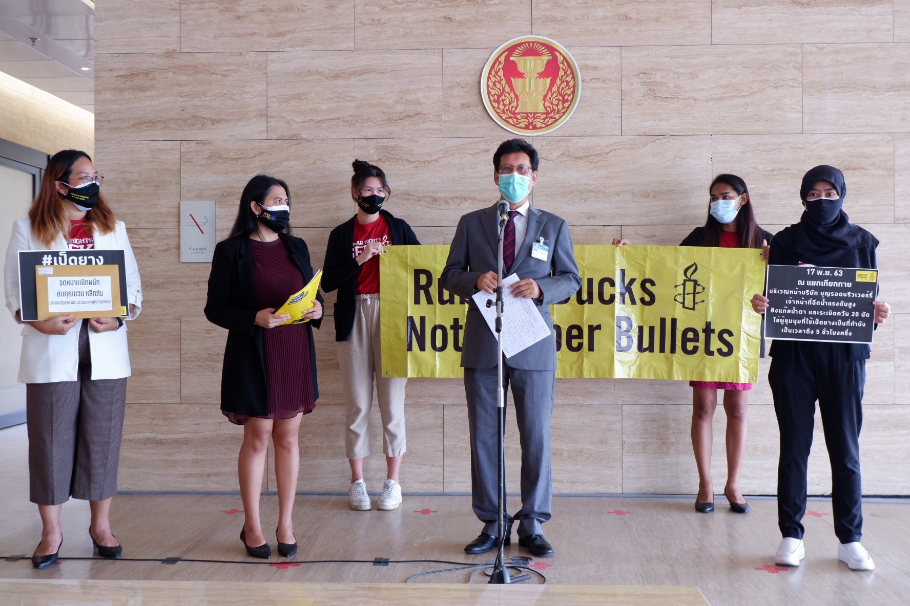 รวมถึงขอให้มีการสืบสวนอย่างรวดเร็ว เป็นอิสระ ไม่ลำเอียงและเห็นผล ต่อกรณีที่เจ้าหน้าที่ใช้กำลัง รวมถึงฉีดน้ำแรงดันสูงที่ผสมสารเคมีใส่ผู้ชุมนุมในปี 2563 ตลอดจนชดเชยเยียวยาอย่างเป็นรูปธรรม รวมทั้งการจ่ายค่าชดเชย ฟื้นฟู และรับประกันว่าเหตุการณ์ดังกล่าวจะไม่เกิดขึ้นอีก และต้องยกเลิกข้อหาทั้งหมดที่มีต่อนักปกป้องสิทธิมนุษยชนและนักกิจกรรม และแก้ไขหรือยกเลิก พ.ร.บ. การชุมนุมสาธารณะ พ.ศ. 2558 พ.ร.ก. การบริหารราชการในสถานการณ์ฉุกเฉิน พ.ศ. 2548 ให้สอดคล้องกับกฎหมายและมาตรฐานสิทธิมนุษยชนระหว่างประเทศ รวมถึงการชุมนุมโดยไม่ต้องแจ้งล่วงหน้าได้ และยกเลิกข้อจำกัดที่เกินกว่าเหตุในการปิดกั้นการชุมนุมโดยสงบ