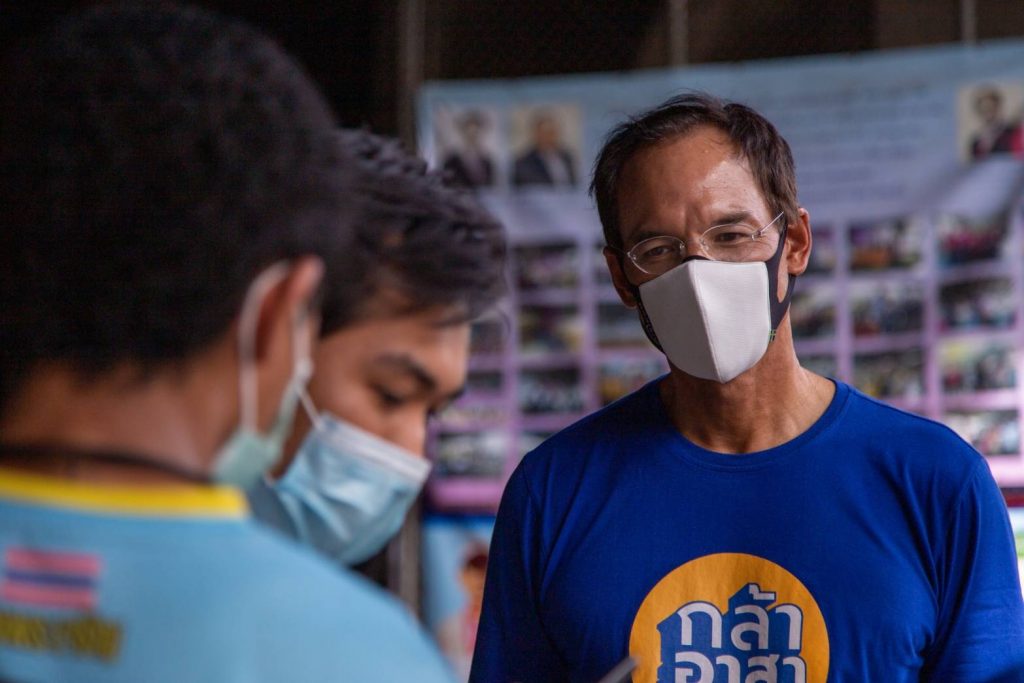 หัวหน้าพรรคกล้า กล่าวด้วยว่า จากการลงพื้นที่ ริมทางรถไฟสายท่าเรือ เขตคลองเตย ชาวชุมชน ใช้ลานกีฬาใต้ทางด่วน ตั้งเต็นท์ล้อมสแลน ทำจุดพักคอย ชุมชน (Community Isolation) แยกผู้ติดเชื้อออกจากครอบครัว ป้องกันการระบาดในชุมชนกันเอง ด้วยความเป็นห่วง ตนพร้อมด้วยทีมงานพรรคกล้า ทั้ง ครูเป็ด มนต์ชีพ ศิวะสินางกูร กรรมการบริหารพรรค นายสมเกียรติ ปัญญะธารา ผู้กล้า – ยานนาวา รีบนำหน้ากากอนามัยโครงการ “แจกแมสก์ 5,000,000 ชิ้น” , ยาฟ้าทะลายโจร , อาหารแห้ง มาช่วยที่กักตัวในศูนย์พักคอยที่ทำกันเอง ก่อนจะย้ายไปศูนย์พักคอยที่วัดสะพาน ซึ่งมีความเชื่อมโยงกับระบบสาธารณสุขและ กทม. เพื่อให้ผู้ที่มีอาการหนักขึ้นเข้าสู่การรักษาพยาบาลได้