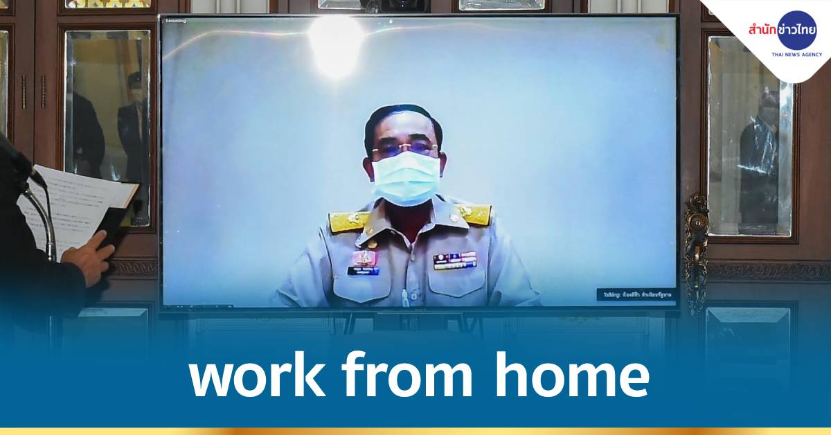 กทม. 19 ก.ค.-ผู้สื่อข่าวรายงานว่า จากมาตรการของกระทรวงสาธารณสุขในเรื่องการขอความร่วมมือทุกภาคส่วนเวิร์คฟอร์มโฮม (wfh) หรือการทำงานอยู่ที่บ้านเต็ม 100% นั้น ล่าสุด พล.อ.ประยุทธ์ จันทร์โอชา นายกรัฐมนตรี และรัฐมนตรีว่าการกระทรวงกลาโหม ได้ตัดสินใจที่จะเวิร์คฟอร์มโฮม ที่บ้านพักตั้งแต่สัปดาห์นี้ โดยเริ่มตั้งแต่วันที่ 20 กรกฎาคมนี้ ในการประชุมคณะรัฐมนตรี ซึ่งจะใช้การประชุมแบบวิดีโอคอนเฟอเรนซ์ ยกเว้นในกรณีที่ต้องพบบุคคลสำคัญเช่น เอกอัครราชทูตประเทศต่างๆ ที่จะเข้าพบ นายกรัฐมนตรีจะเดินทางมาพบอย่างเป็นทางการที่ทำเนียบรัฐบาลด้วยตนเอง