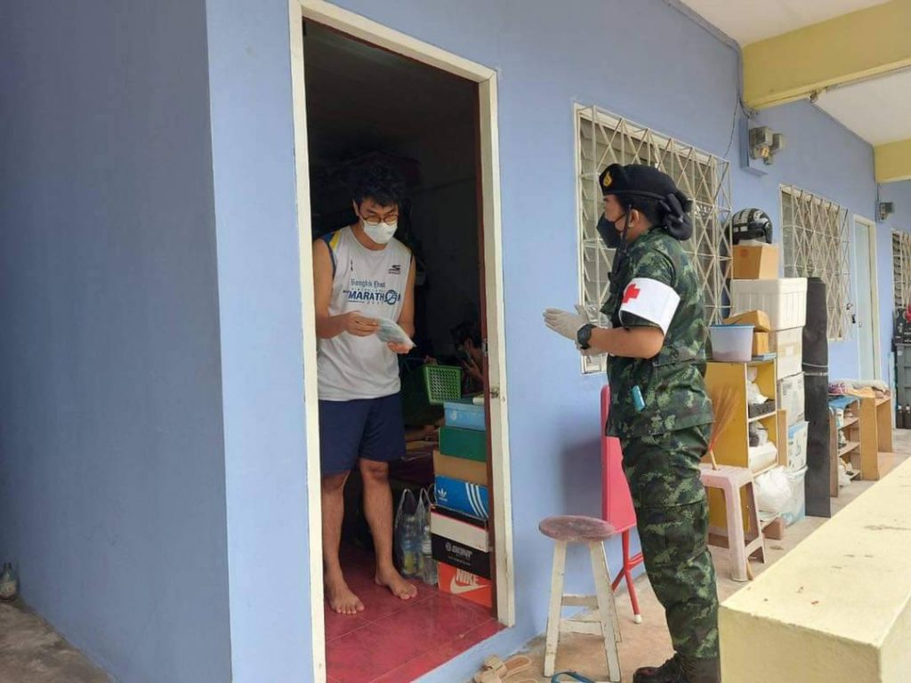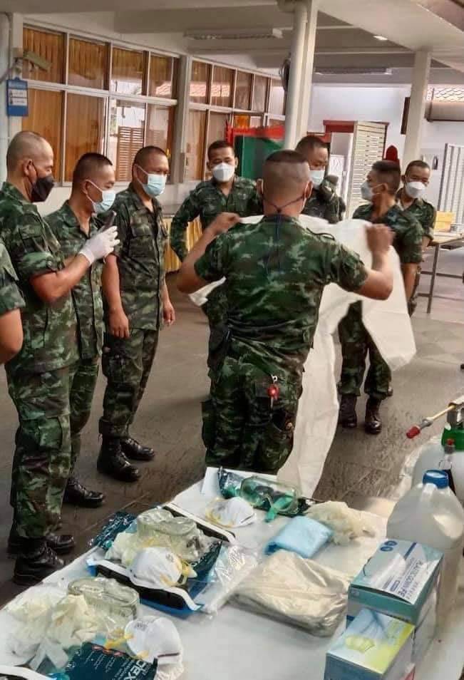 โฆษกกระทรวงกลาโหม ยังกล่าวถึง กรณีการเข้าไปช่วยเหลือผู้ป่วยที่ตกค้างตามบ้านและชุมชนว่า กำลังทหารตำรวจ ได้ร่วมกันจัดตั้ง “ศูนย์เคลื่อนย้ายผู้ป่วย” โดยจัดยานพาหนะกว่า 200 คัน พร้อมเจ้าหน้าที่ หนุนเสริมเข้าไปช่วยทำงานร่วมกับ กทม.และ สธ.ตลอด 24 ชม. (ติดต่อสายด่วน 191,1668, 1669, 1330 และ ศูนย์เคลื่อนย้ายฯ 062 4427903, 062 3502357 ) ช่วยเคลื่อนย้ายนำผู้ป่วยเข้ามาสู่ระบบการรักษาแล้ว รวม 14,635 ราย พร้อมกันนี้ ทบ.ได้จัดตั้ง “ศูนย์ประสานงานต้านภัยโควิด” เพื่อช่วยเหลือประชาชนในทุกกรณี ฟรีตลอด 24 ชม. ทั้งการรับ – ส่ง ผู้ป่วยและผู้หายป่วย รวมทั้งเคลื่อนย้าย ฌาปนกิจศพผู้ติดเชื้อ ขณะเดียวกันได้จัดยานพาหนะและอากาศยาน สนับสนุนส่งกลับผู้ป่วยที่สมัครใจไปรับการรักษาในภูมิลำเนาตามความพร้อมของจังหวัดปลายทาง และเพื่อให้การแก้ปัญหาในพื้นที่ทันต่อสถานการณ์ พลเอกประยุทธ์ จันทร์โอชา นายกรัฐมนตรีและรัฐมนตรีว่าการกระทรวงกลาโหม ได้สั่งการให้กองทัพ จัดกำลังลงพื้นที่ ตั้ง “จุดบริการประชาชน” ในชุมชน 13 จังหวัดพื้นที่สีแดงเข้ม โดยกำลังทหารได้กระจายลงพื้นที่ชุมชนต่างๆ แล้ว รวม 110 จุด โดยเป็นพื้นที่ใน กทม. 44 จุด เช่น ชุมชนวัดมะกอก สามพะยา วัดลาดบัวขาว วัดสะพาน สวนพลู ตลาดยิ่งเจริญและตลาดดินแดง เป็นต้น โดยประชาชนในพื้นที่สามารถแจ้งเหตุ เพื่อขอรับการช่วยเหลือได้ในทุกกรณี ซึ่งก็จะช่วยรองรับแก้ปัญหาเฉพาะหน้าที่เกิดขึ้นในพื้นที่ได้รวดเร็วขึ้น