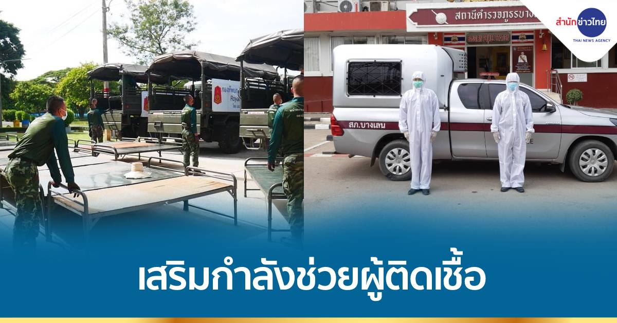 กรุงเทพฯ 25 ก.ค.-โฆษกกระทรวงกลาโหม ระบุทหาร-ตำรวจ เสริมกำลังช่วยเหลือผู้ติดเชื้อโควิด พื้นที่จังหวัดสีแดงเข้มตามบ้านและชุมชน นำเข้าสู่ระบบรักษา เผยใช้หน่วยทหาร ตั้งโรงพยาบาลสนามแล้วรวม 34 แห่ง ใน 24 จังหวัดรวม 6,135 เตียง เร่งเตรียมสโมสรทหาร-สโมสรตำรวจ เปิดเพิ่มภายในสิ้นเดือนก.ค.อีก 600 เตียง
