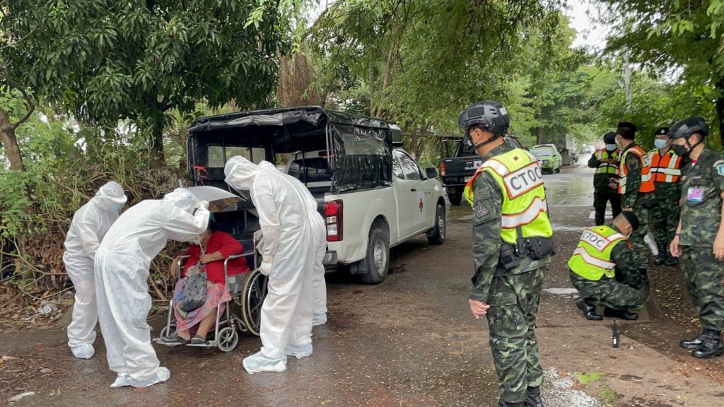 ในส่วนของการให้ความช่วยเหลือประชาชน ณ วัดลาดบัวขาว เขตสะพานสูง กรุงเทพฯ ซึ่งรับผิดชอบโดยศูนย์ต่อต้านการก่อการร้ายสากล ปัจจุบันได้ดำเนินการในการทำหน้าที่ติดต่อประสานงานระหว่างผู้ป่วยกับหน่วยงานที่เกี่ยวข้อง เช่น กระทรวงสาธารณสุข และเจ้าหน้าที่เทศกิจในพื้นที่ เพื่อส่งต่อผู้ป่วยเข้ารับการรักษาทางการแพทย์ โดยจัดรถยนต์พร้อมพลขับ รับ-ส่งประชาชนที่ตรวจพบเชื้อไปยังโรงพยาบาลสนาม สถานพยาบาล หรือนำส่งต่อไปยัง Home Isolation/community Isolation พร้อมทั้งให้การช่วยเหลือด้านการให้คำแนะนำในการดูแลตนเอง และแจกจ่ายยารักษาโรคเบื้องต้น ตลอดจนยาเวชภัณฑ์ เจลแอลกอฮอล์ หน้ากากอนามัย เครื่องอุปโภค-บริโภค ข้าวสารอาหารแห้ง วัตถุดิบประกอบอาหาร เพื่อบรรเทาความเดือดร้อนในเบื้องต้นให้แก่ประชาชน ที่ได้รับผลกระทบจากโควิด-19 แล้ว.-สำนักข่าวไทย