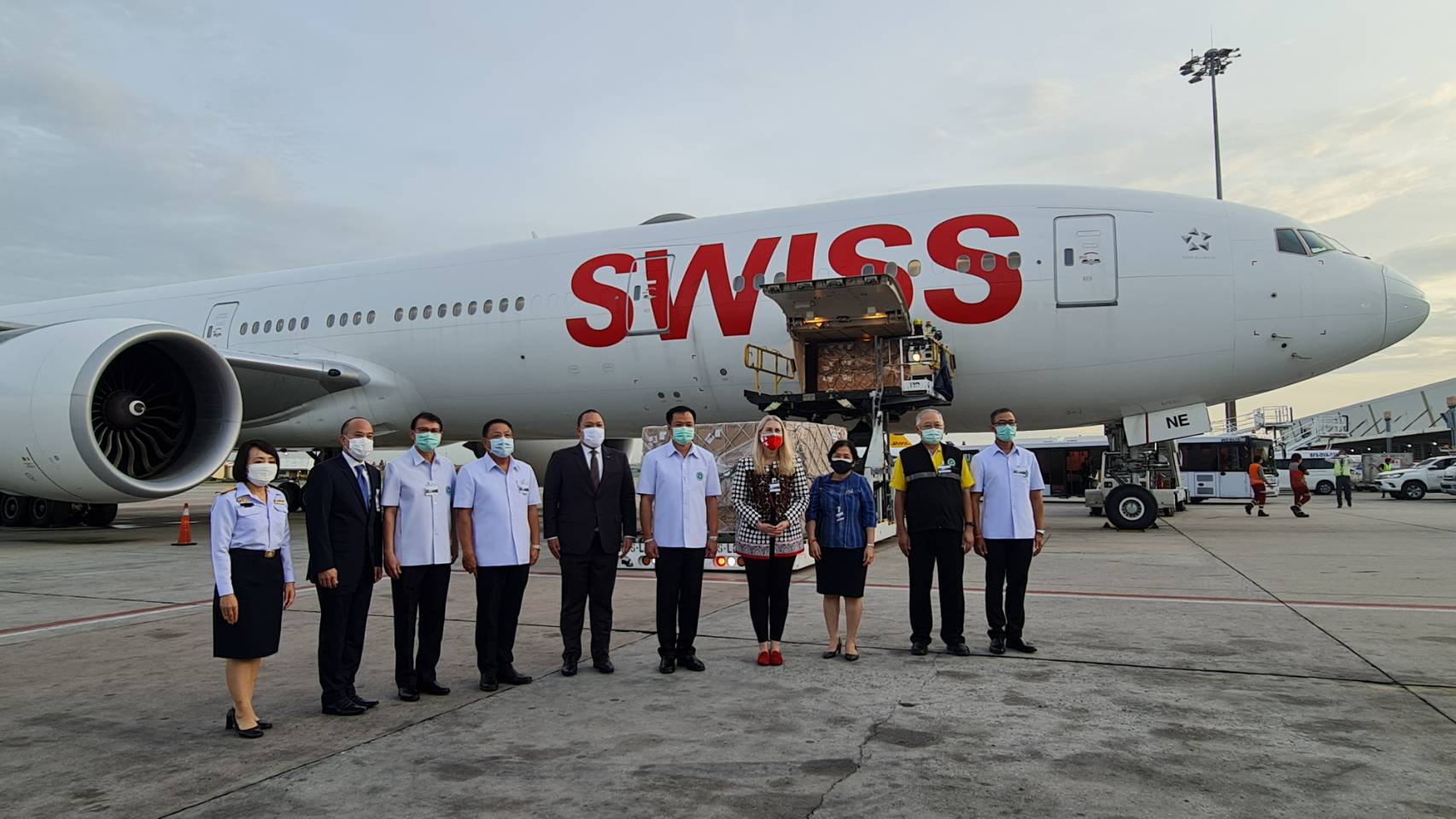 รองโฆษกประจำสำนักนายกรัฐมนตรี กล่าวว่า สำหรับเวชภัณฑ์ดังกล่าวประกอบด้วยชุดตรวจ Antigen Test Kit จำนวน 1.1 ล้านชุด และ Ventilator(เครื่องช่วยหายใจ) จำนวน 102 เครื่อง ซึ่งขนส่งมาในเที่ยวบินที่ LX180 สายการบิน SWISS Air ถึงท่าอากาศยานสุวรรณภูมิเมื่อเวลา 05:20 น.วันนี้ ซึ่งนายอนุทินกล่าวขอบคุณในไมตรีที่รัฐบาลสวิตเซอร์แลนด์มอบแก่ประเทศไทยเสมอมา โดยชุดตรวจ Rapid Antigen Test ที่ได้รับทั้งหมดจะมีส่วนสำคัญอย่างยิ่งที่รัฐบาลจะใช้แจกจ่ายแก่ประชาชน และเป็นอุปกรณ์ให้แก่บุคลากรทางการแพทย์ในการดำเนินการตรวจเชิงรุกในพื้นที่ที่มีการแพร่ระบาดของโรคโควิด-19 ส่วนเครื่องช่วยหายใจจะกระจายไปยังโรงพยาบาลที่ยังขาดแคลนอุปกรณ์ต่อไป