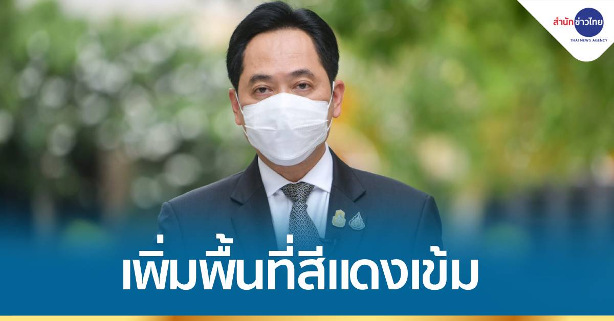 - การยกระดับของพื้นที่สถานการณ์ย่อยในพื้นที่ทั่วราชอาณาจักร ปรับเป็น พื้นที่ควบคุมสูงสุดและเข้มงวด (แดงเข้ม) จากเดิม 13 จังหวัดเป็น 29 จังหวัด กรุงเทพมหานคร จังหวัดกาญจนบุรี จังหวัดชลบุรี จังหวัดฉะเชิงเทรา จังหวัดตาก จังหวัดนครปฐม จังหวัดนครนายก จังหวัดนครราชสีมา จังหวัดนราธิวาส จังหวัดนนทบุรี