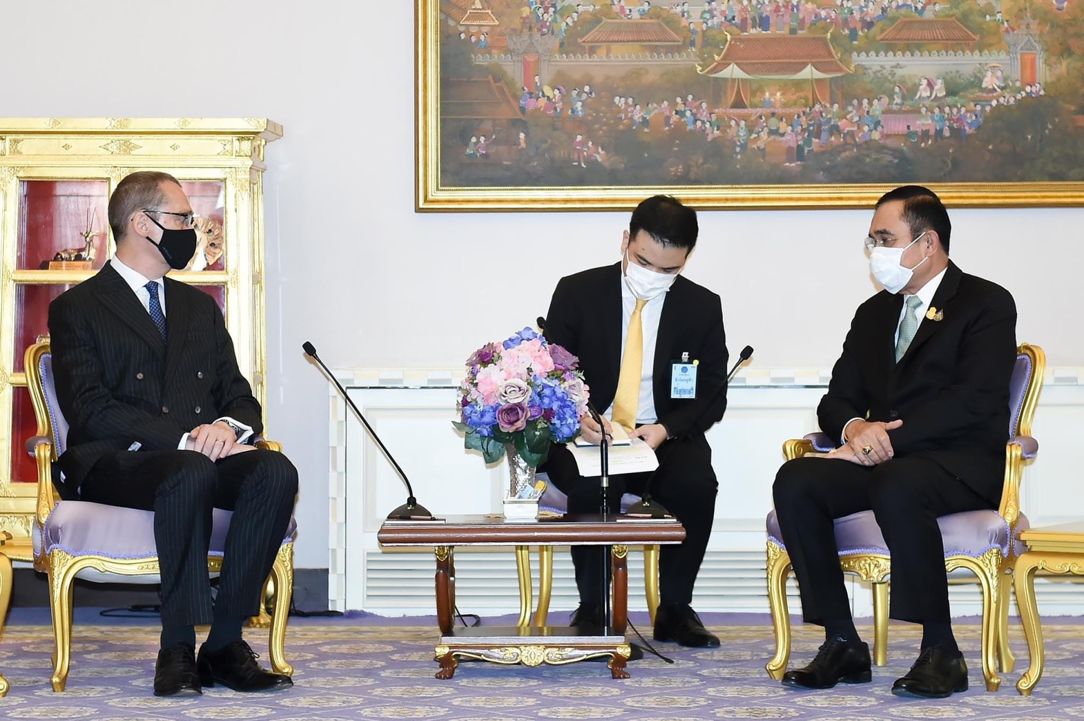 พล.อ.ประยุทธ์ จันทร์โอชา นายกรัฐมนตรีและรัฐมนตรีว่าการกระทรวงกลาโหม เป็นประธานพิธีรับมอบวัคซีนป้องกันเชื้อไวรัสโคโรนา 2019 จากรัฐบาลสหราชอาณาจักร โดยมีนายเอวาน โจนส์ (H.E. Mr. Evan Jones) อุปทูตรักษาราชการแทนเอกอัครราชทูตสหราชอาณาจักรประจำประเทศไทย เป็นผู้แทนรัฐบาลสหราชอาณาจักรร่วมพิธี โดยนายกรัฐมนตรี กล่าวถวายพระพรแด่สมเด็จพระราชินีนาถเอลิซาเบธที่ 2 ในนามของรัฐบาลไทยและประชาชนชาวไทย ขอให้ทรงพระเกษมสำราญ พระพลานามัยแข็งแรง และฝากความระลึกถึงนายบอริส จอห์นสัน นายกรัฐมนตรีสหราชอาณาจักร
