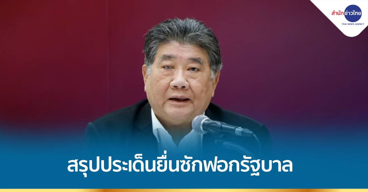 พรรคเพื่อไทย 2 ส.ค.- ฝ่ายค้านสรุปประเด็นการยื่นญัตติอภิปรายไม่ไว้วางใจรัฐบาล ตามมาตรา 151 ชี้ รัฐบาลบริหารผิดพลาดก่อให้เกิดผลกระทบร้ายแรงต่อชีวิตของพี่น้องประชาชน เตรียมเคาะรายชื่อซักฟอกรัฐมนตรี 10 ส.ค.นี้