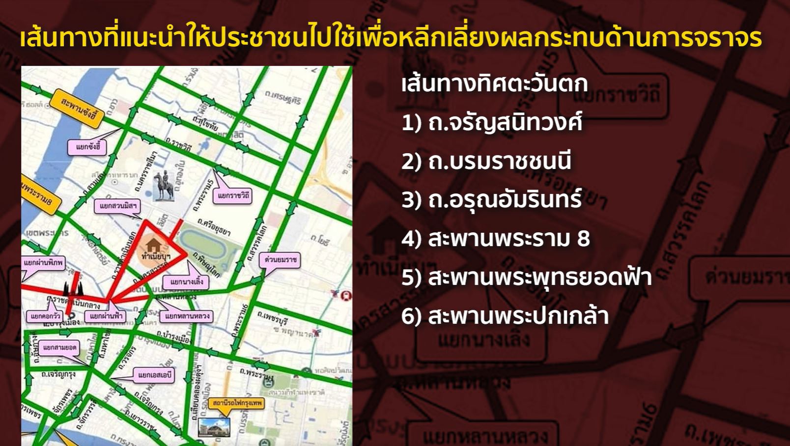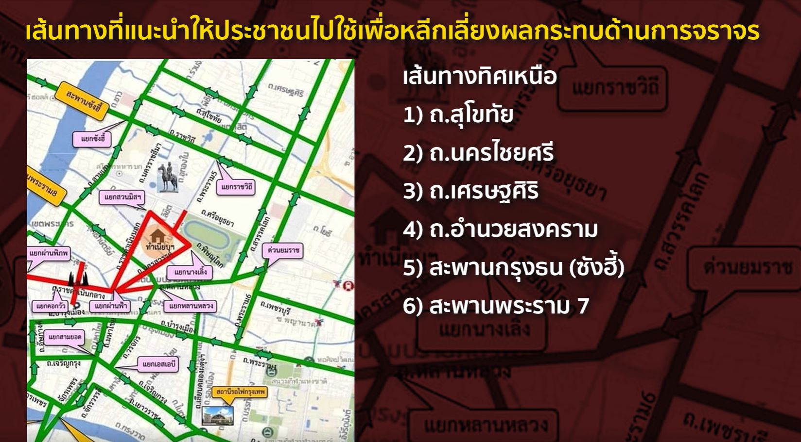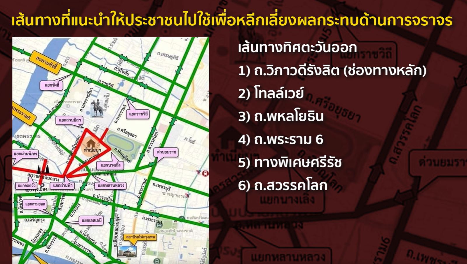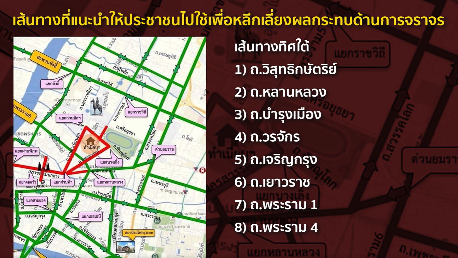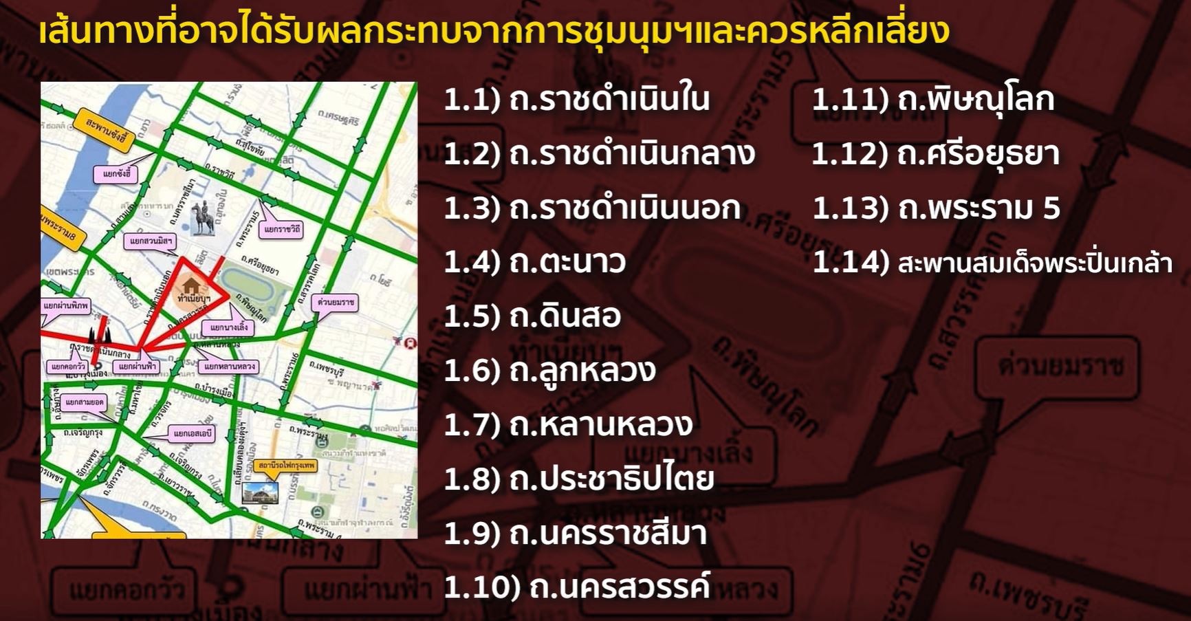 1.เส้นทางที่อาจได้รับผลกระทบจากการชุมนุมและควรหลีกเลี่ยง