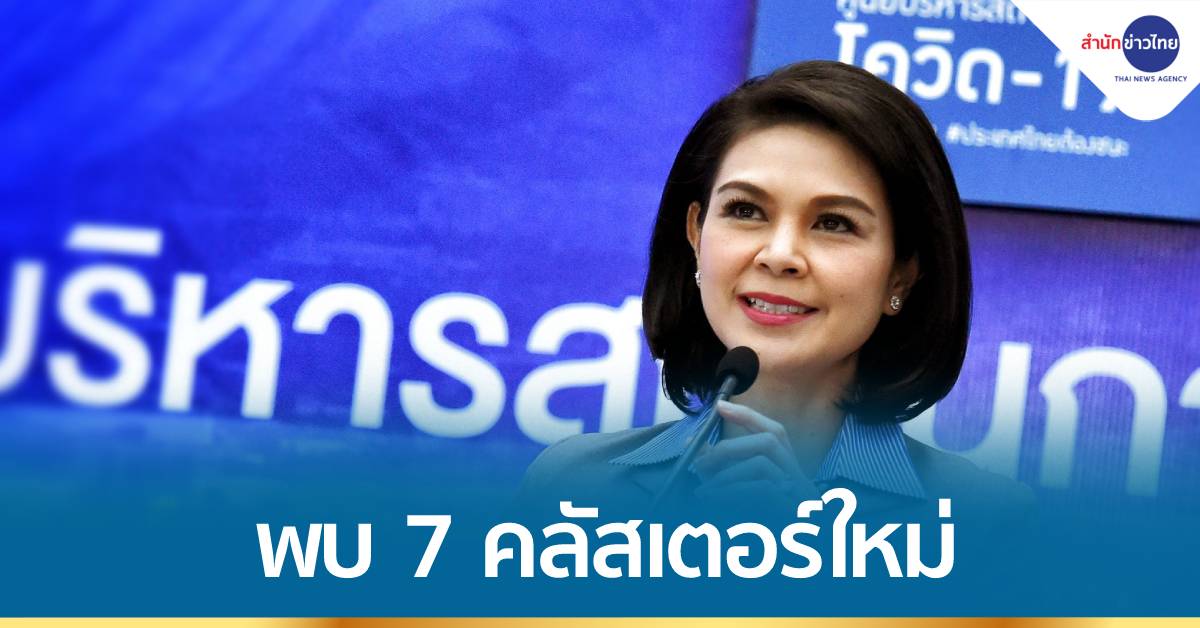 ทั้งนี้ มีรายงานการพบคลัสเตอร์ใหม่ 7 แห่ง ได้แก่ บริษัทเครื่องใช้ไฟฟ้า ปทุมธานี 9 ราย บริษัทโลหะแผ่น หนองแค สระบุรี 28 ราย บริษัทชิ้นส่วนอิเล็กทรอนิกส์ ฉะเชิงเทรา 12 ราย โรงงานแปรรูปไก่ ราชบุรี 46 ราย ตลาดโบวลิง จันทบุรี 16 ราย โรงงานอุตสาหกรรมอาหาร กาญจนบุรี 31 ราย และ โรงงานน้ำแข็ง ที่ละแม ชุมพร 30 ราย